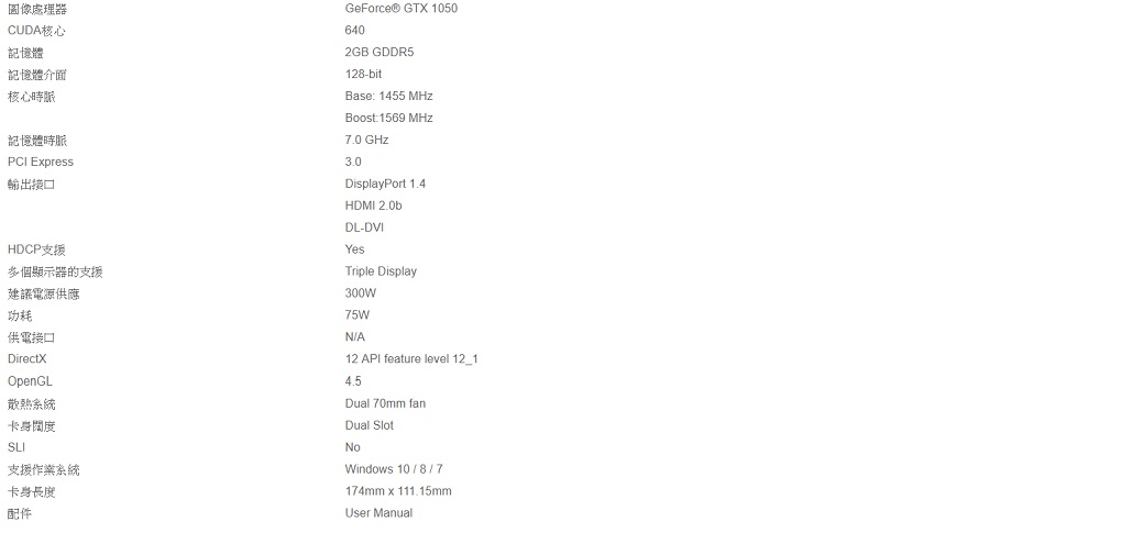 ZOTAC GTX1050 OC 2G(P10500C-10L)(1569MHz/雙風扇/17.4cm/註四年)