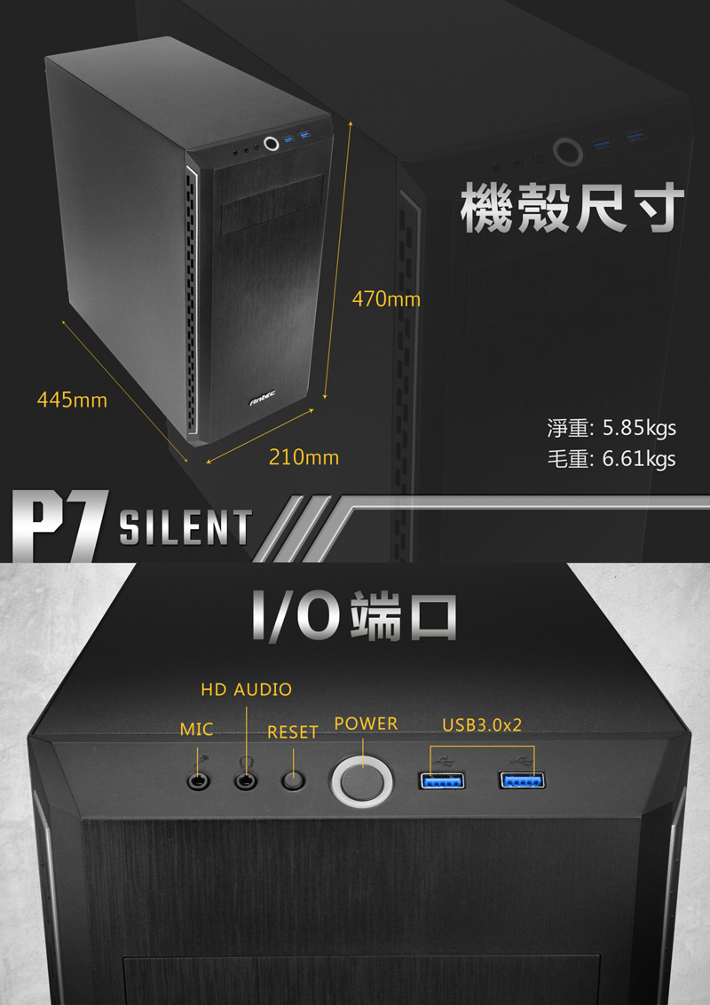 • Antec P7 Silent 顯卡長39/CPU高16.5/支援5.25"