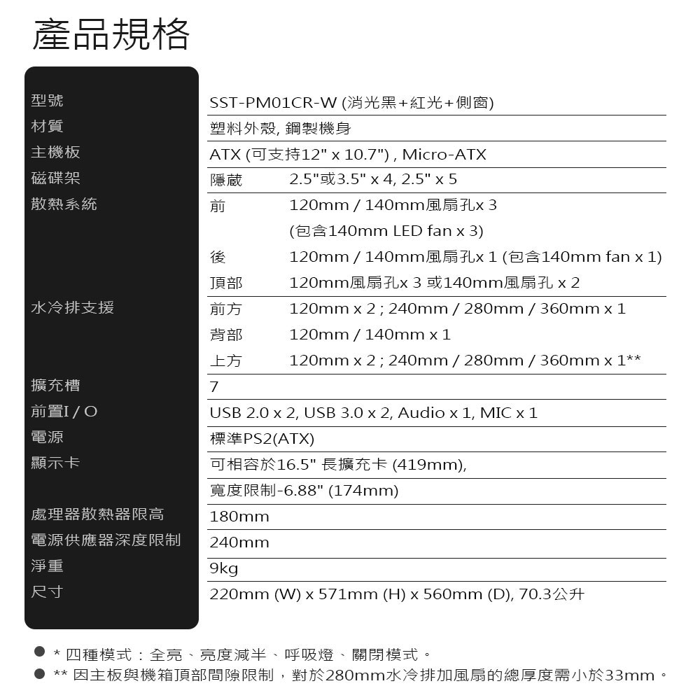 銀欣 PM01 消光黑 顯卡長41/CPU高18/14cm 風扇*4/紅光/透側/ATX(