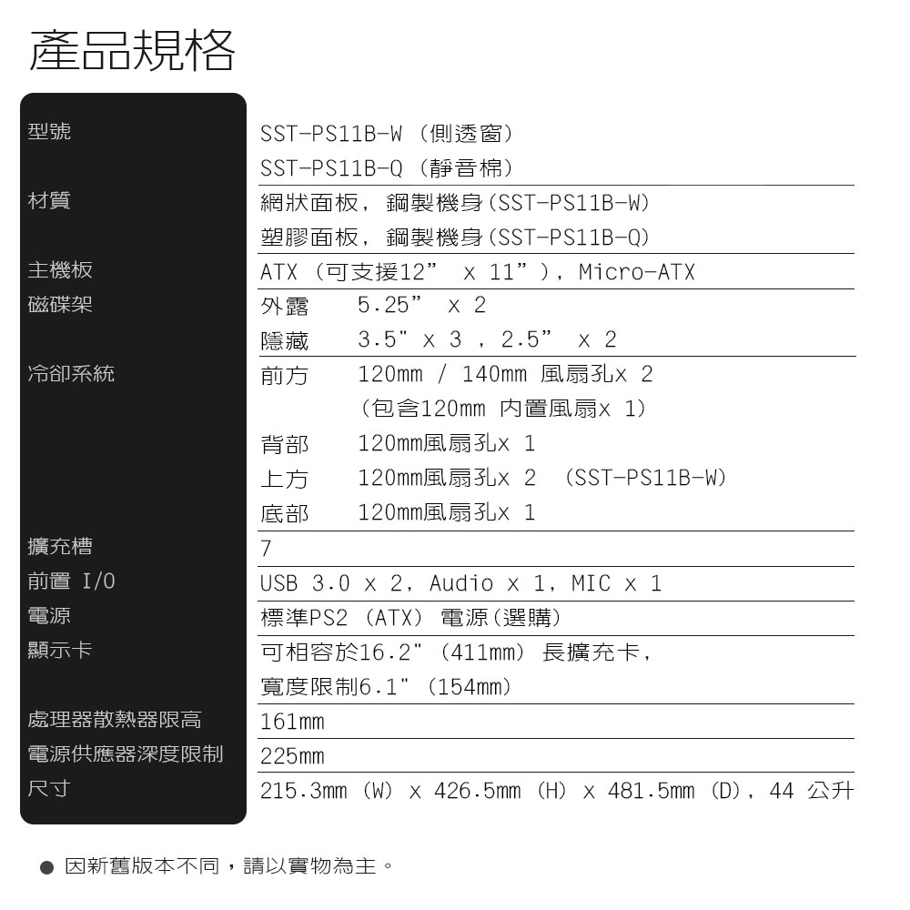 • 銀欣 PS11 黑 靜音版 顯卡長40/CPU高16/靜音面板/SSD*2