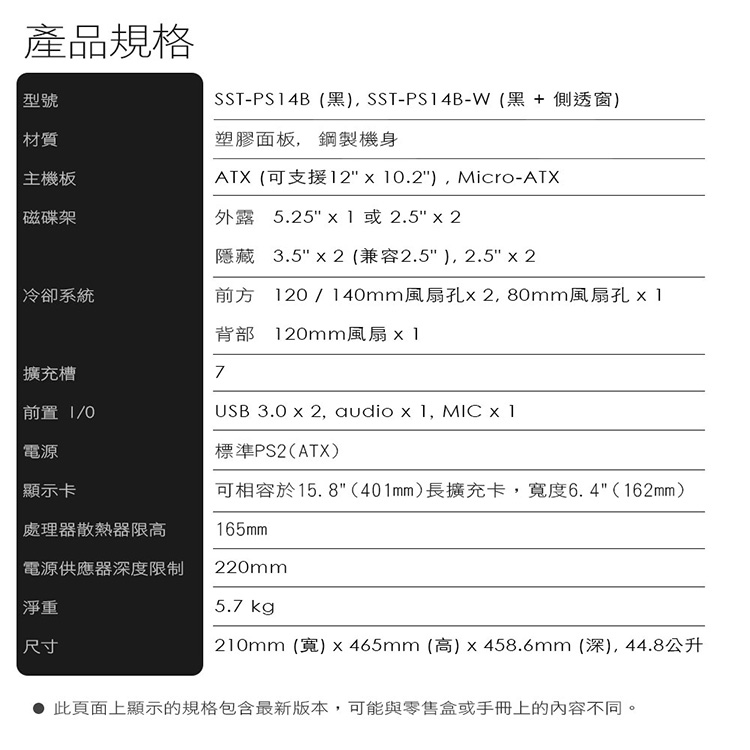 • 銀欣 PS14 黑 透側版 顯卡長40/CPU高16/壓克力透側/ATX