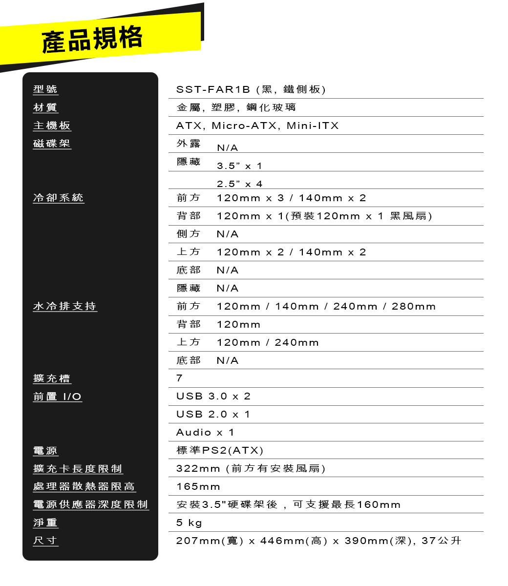 銀欣 FARA R1 黑 顯卡長32.2/U高16.5/ATX(FAR1B)