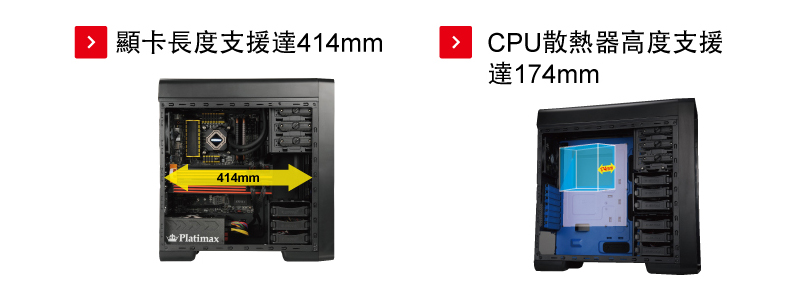 | | 抽取式磁架設計,支援超長顯卡安裝(最長支援414mm) |