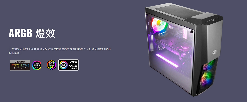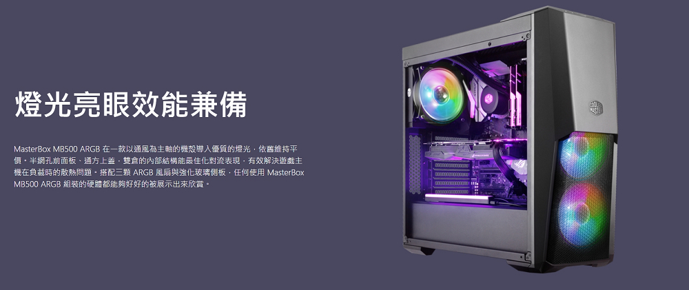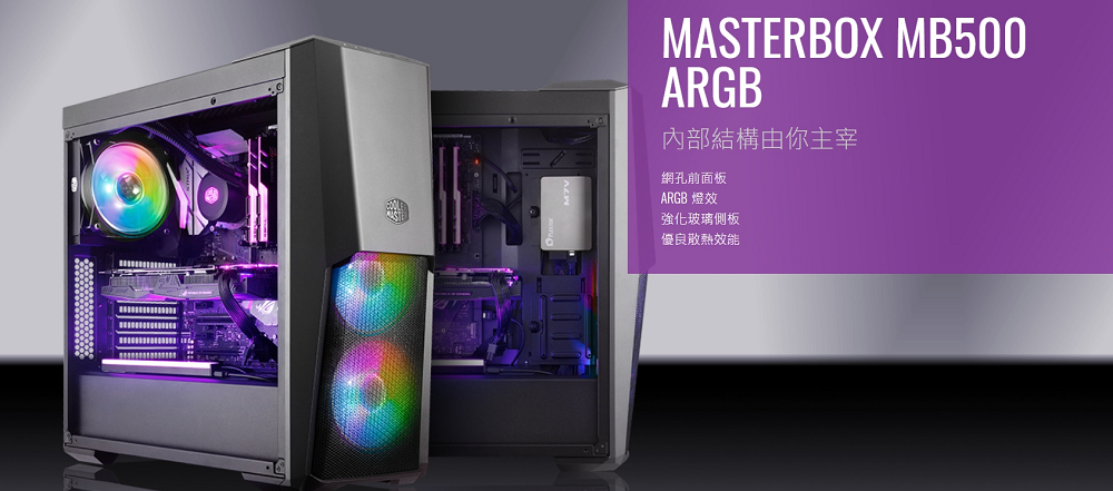 酷碼 MasterBox MB500 A.RGB 顯卡40/CPU高16/玻璃透側/ATX(B500D-KGNN-S01)