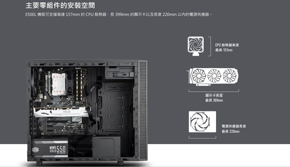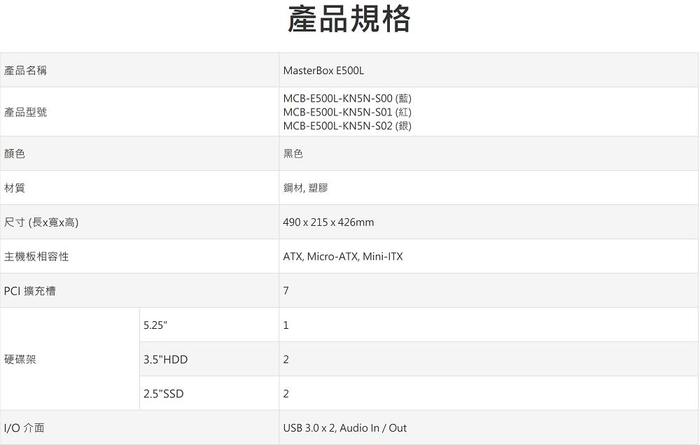 酷碼 MasterBox E500L(銀) 顯卡長39.9/CPU高15.7/滑蓋面板/ATX(KN5N-S02)