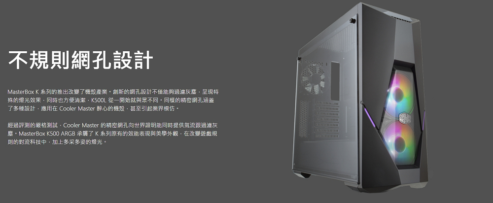 酷碼 MasterBox K500 A.RGB 顯卡長40/CPU高16/玻璃透側/ATX(K500D-KGNN-S02)