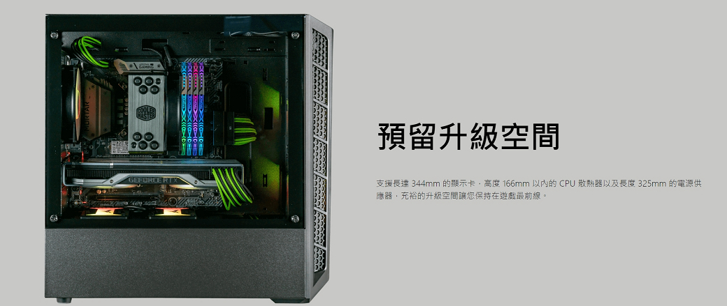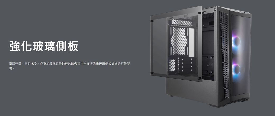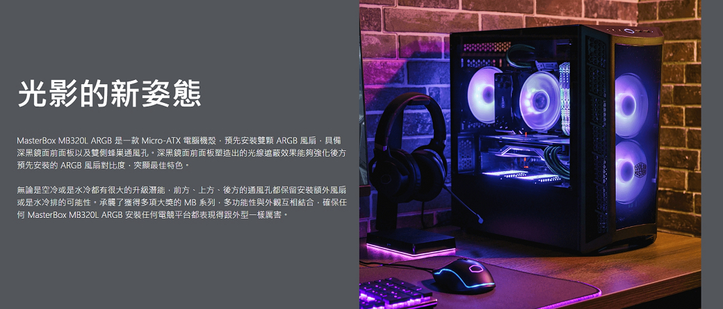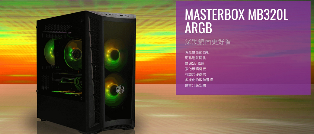 酷碼 MasterBox MB320L ARGB 顯卡長34/CPU高16.6/玻璃透側/深黑鏡面面板/M-ATX