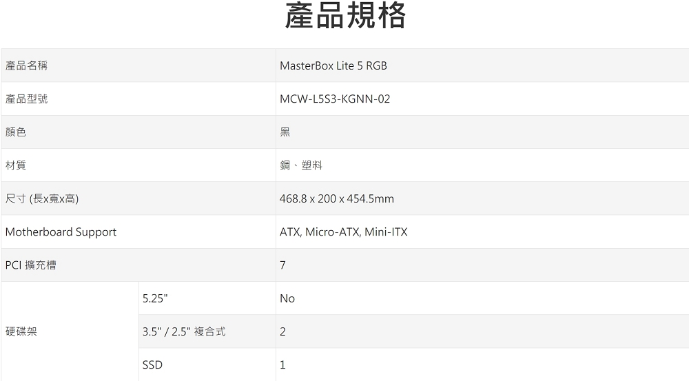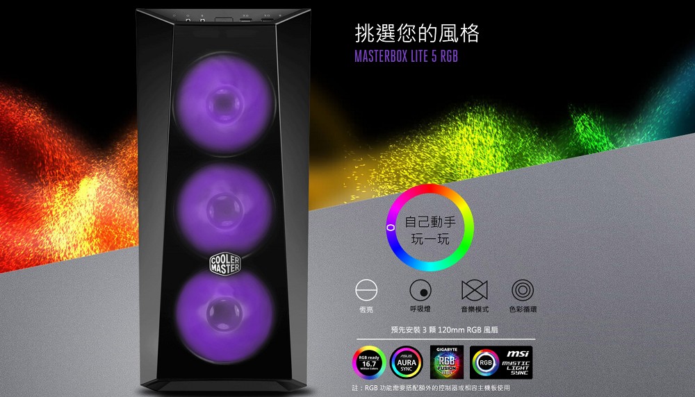酷碼 MasterBox Lite 5 RGB 顯卡40/CPU高16/玻璃透側/RGB需搭主板/ATX