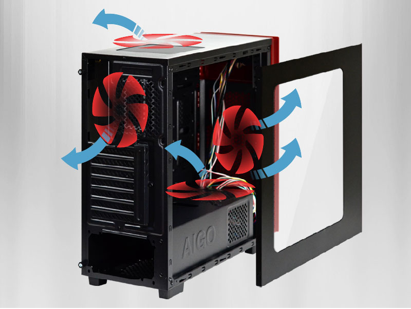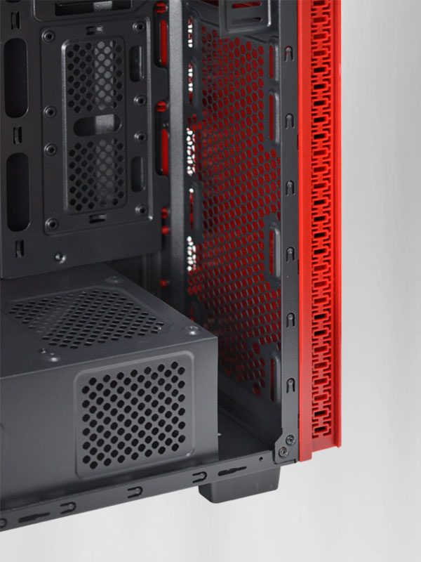 可安裝五組散熱風扇總共可安裝五組系統散熱風扇,分體式下置電源