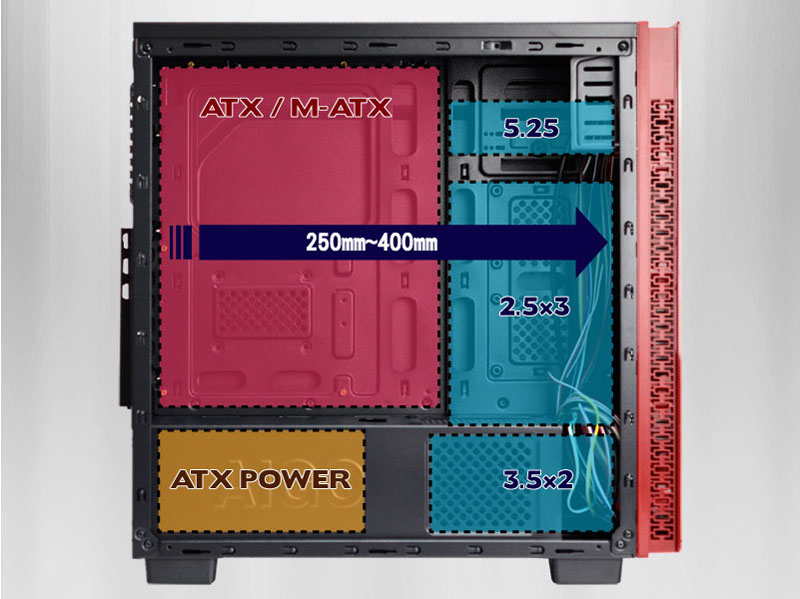可安裝高性能顯示卡可安裝標準ATX主機板,及長250mm至400mmt高性能顯示卡