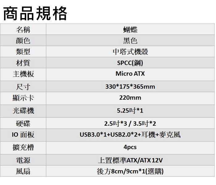 • YAMA雅瑪 蝴蝶USB3.0 Micro ATX中塔式電腦機殼