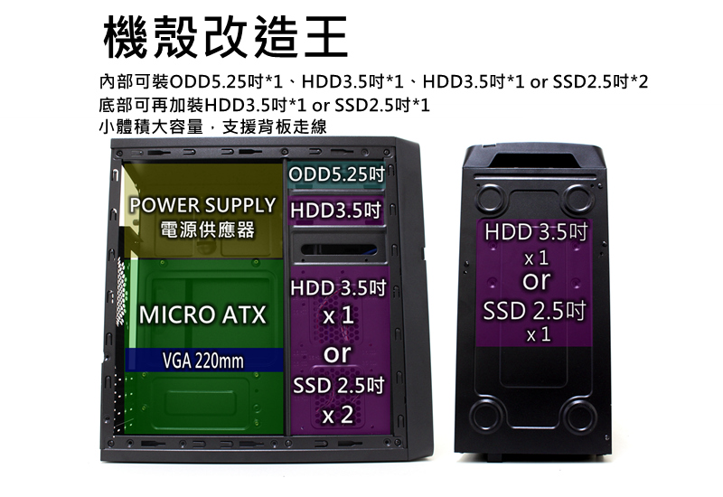 YAMA 德隆 蝴蝶(M-ATX/5.25槽*1/顯卡220mm/塔散130mm)