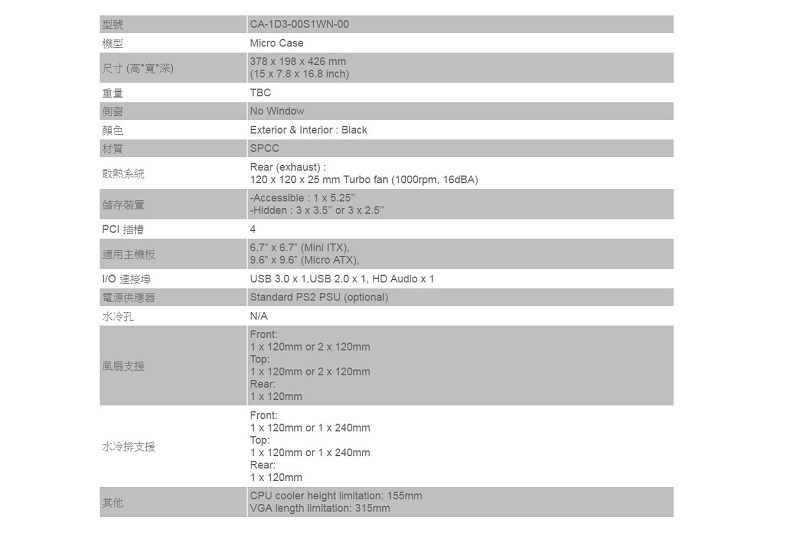 曜越 Versa H13 顯卡長 31/CPU高15/M-ATX