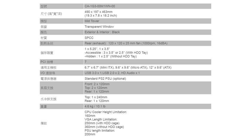 曜越 Versa N26 顯卡長36(拆硬碟架)/CPU高16/SSD*4(共用*3) ATX