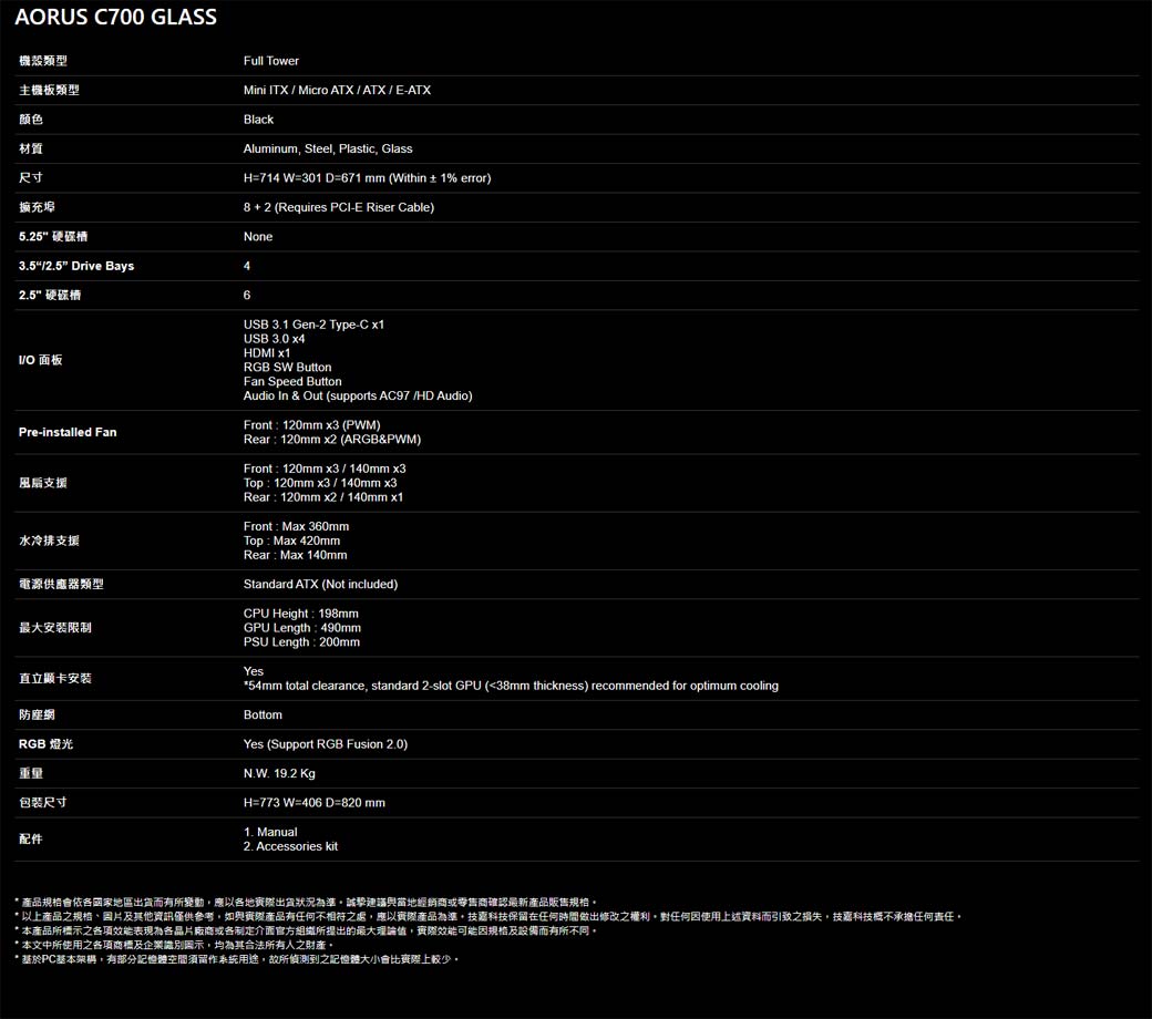 技嘉 AORUS C700 GLASS