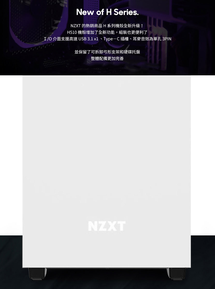 NZXT H510 白黑 顯卡長38.1/CPU高16.5/ATX(H510B-W1)