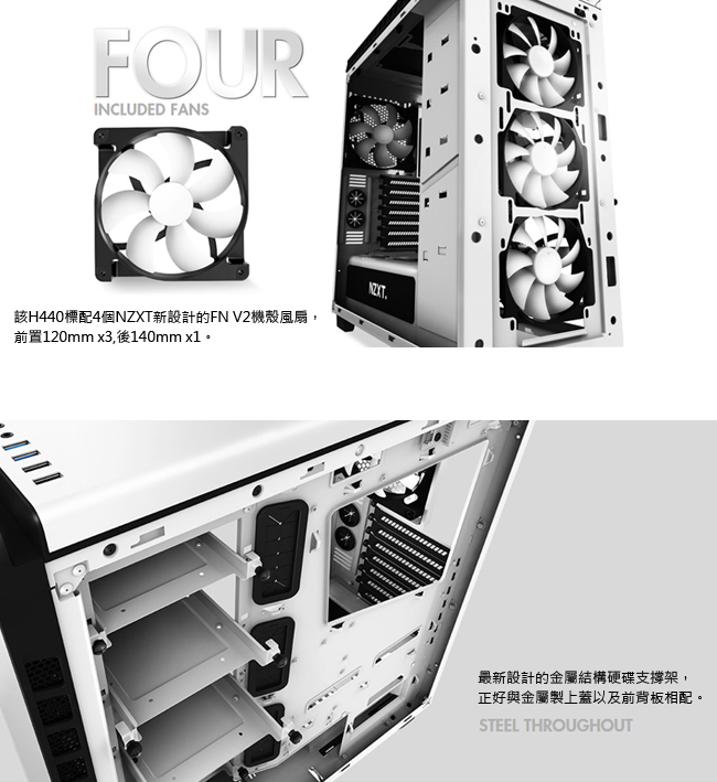NZXT H440 顯卡長 27cm、風扇高18cm、內置無門設計、全景透側
