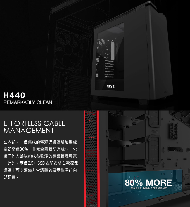 NZXT H440 顯卡長 27cm、風扇高18cm、內置無門設計、全景