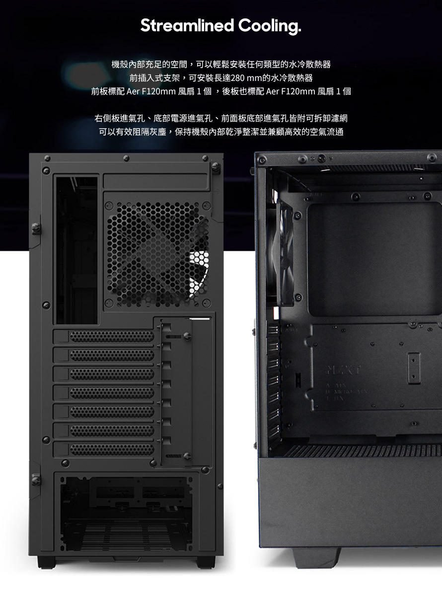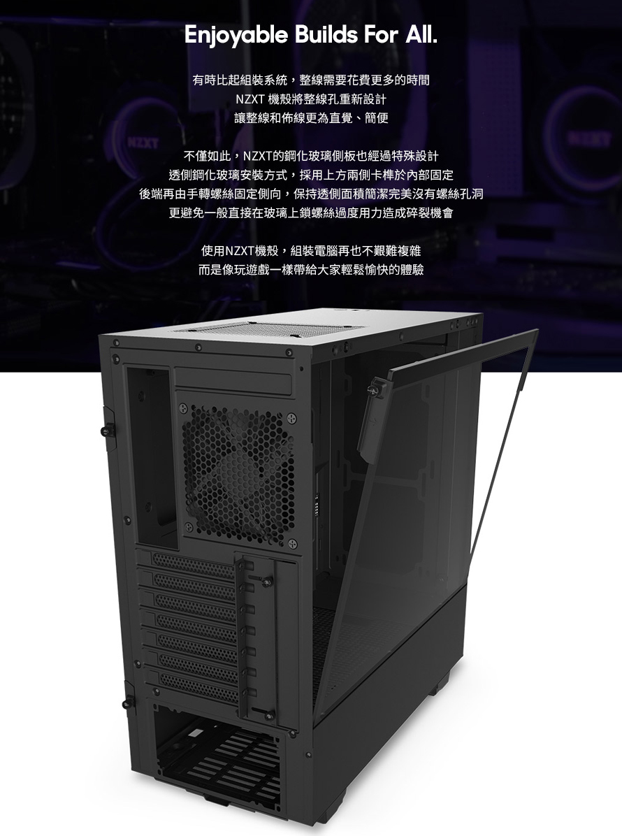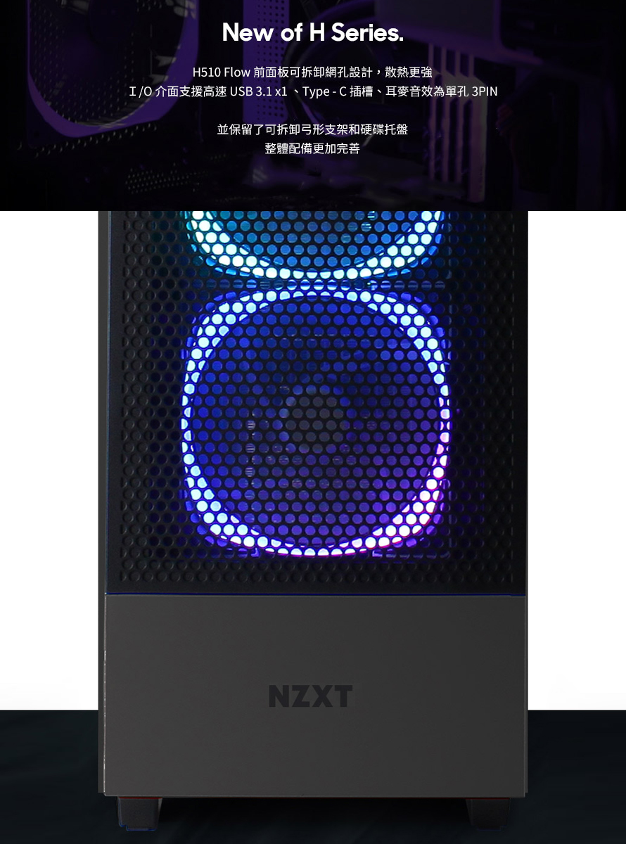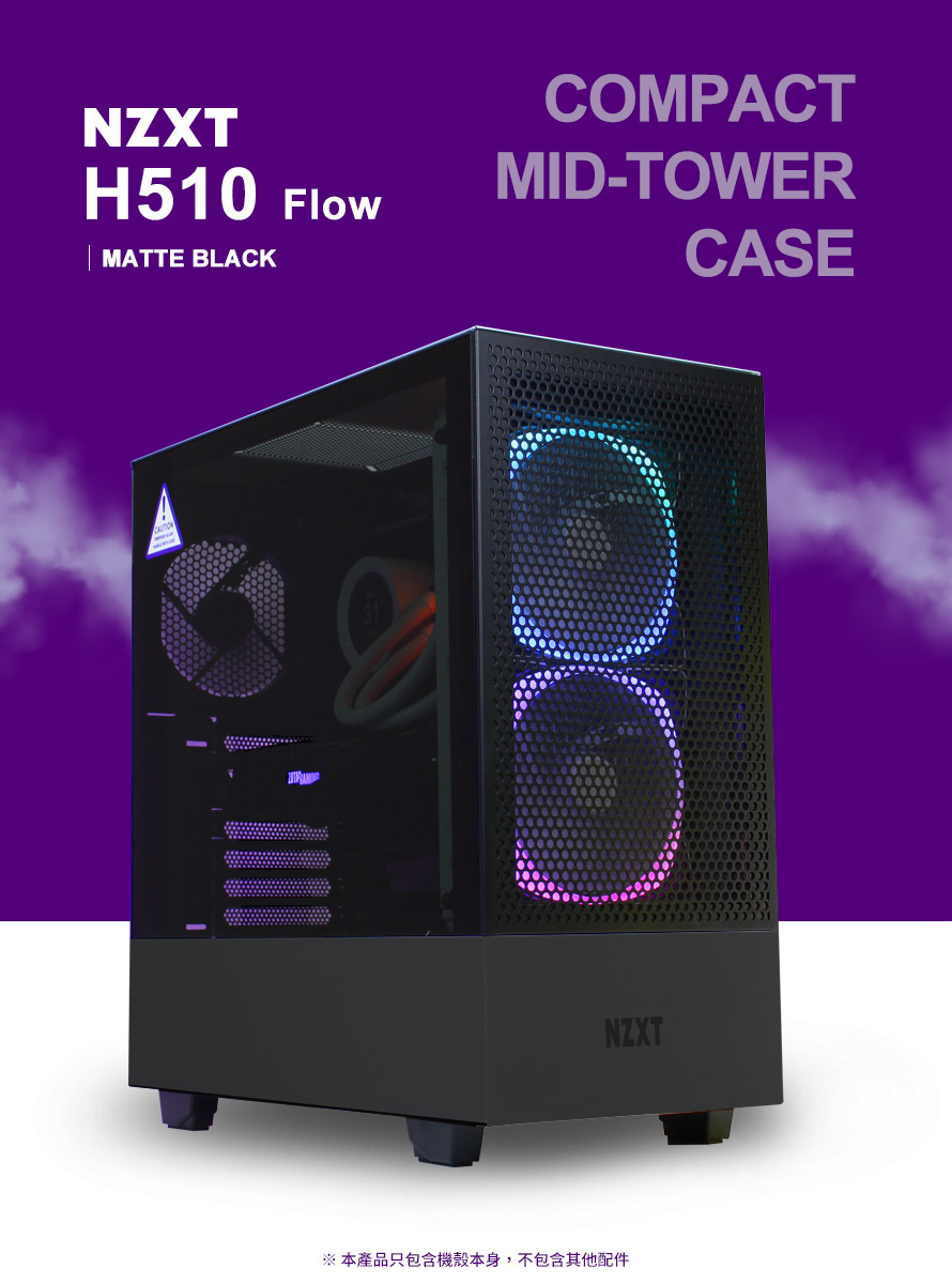 NZXT H510 Flow 全黑 顯卡長36/U高16.5/玻璃透側/ATX(H52FB-01)
