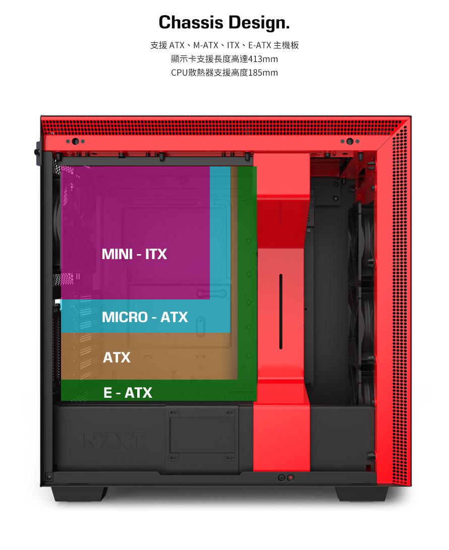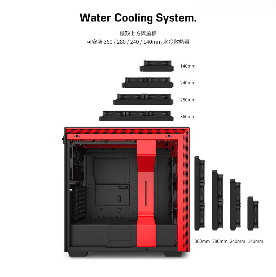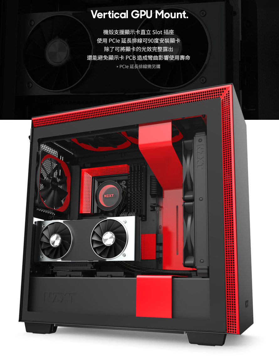 產品顏色:黑/紅 產品尺寸:W: 230mm H: 516mm D: 494mm (連支架) 產品材質:SGCC、全鋼化玻璃 主機板相容性:E-ATX , ATX , M-ATX 及 ITX 硬碟裝置:3.5"HDD:2+2個 , 2.5"SSD:7個 風扇支援:前板 120mm x3/ 140mm x2 (標配3個 Aer F120mm風扇)、上方 120mm x3 / 140mm x2、背板 120mm x1 / 140mm x1( 標配1個 Aer F140mm風扇 ) 水冷支援:前板 140 / 240 / 280 / 360mm x1,上方 140 / 240 / 280 / 360mm x1 PCI擴充槽:7 電源支援:PSII, PSU (ATX) 前置接口:USB3.1 x2、USB Type-C x1及Audio x1 顯卡支援長度:413 mm CPU散熱器支援高度:185 mm 有限責任保固(含原產內裝配件):二年。送修時需檢付完整資訊保卡及發票憑證否則以官方判定為準。非一般使用環境 工業測試 商業行為 人為損壞等不予保固 ※以上規格資料若有任何差異,以原廠所公佈資料為準。 ※以上產品規格官方保有任何變更權利,以實際出貨為準。