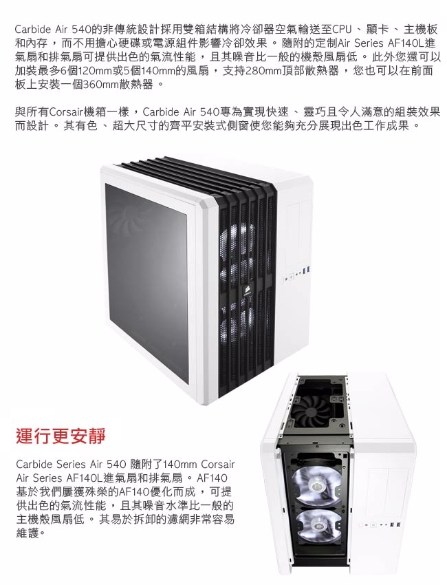 • 海盜船 Carbide Air 540 白 顯卡長31/CPU高17