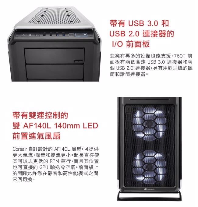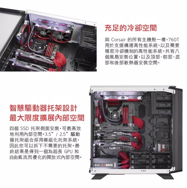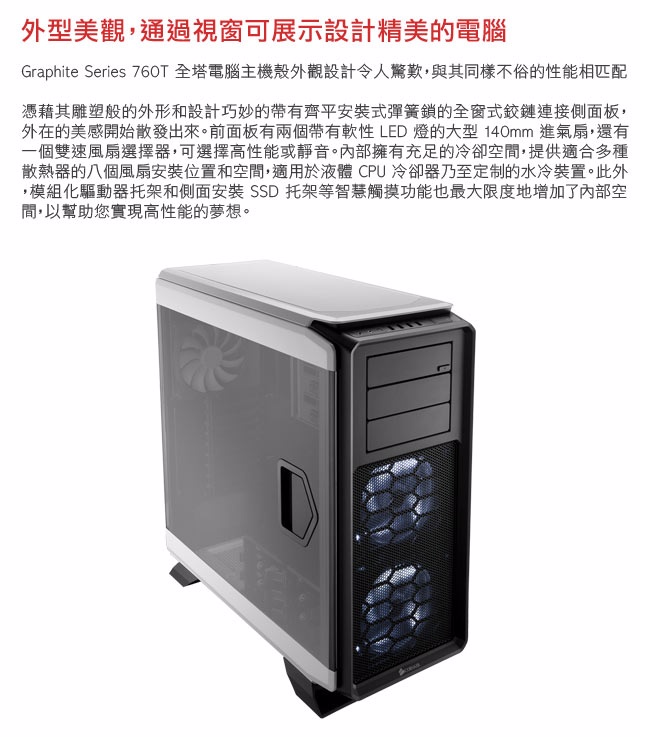 海盜船 Graphite 760T(白)顯卡長45/CPU高17/SSD*10(6共用)/透側/E-ATX