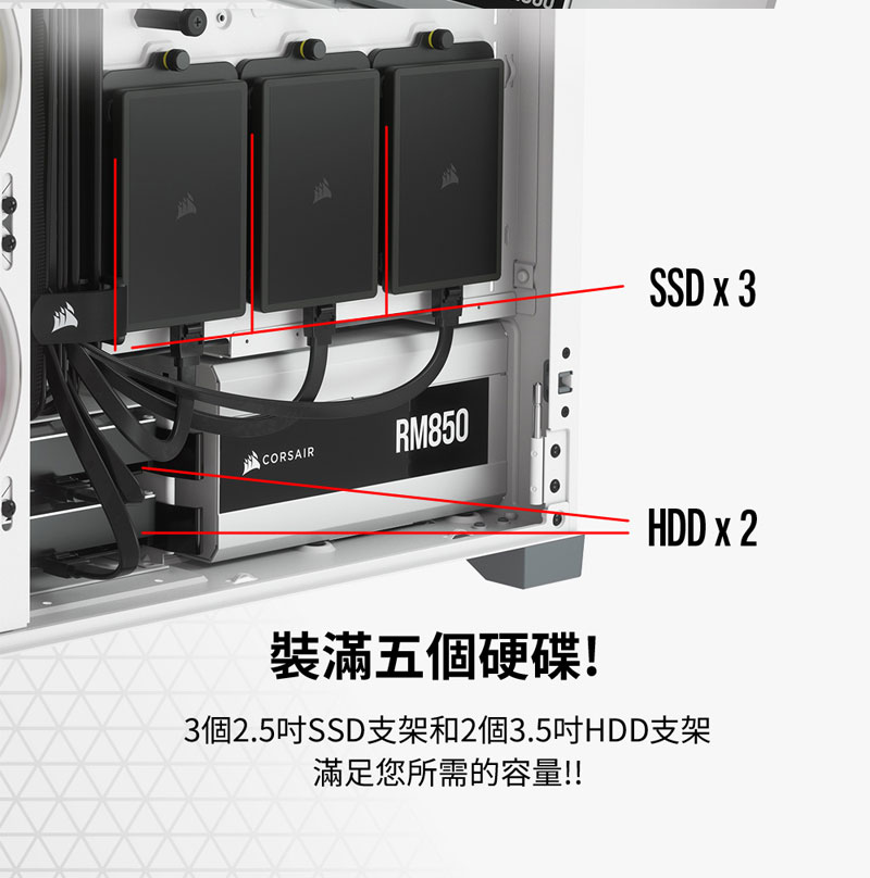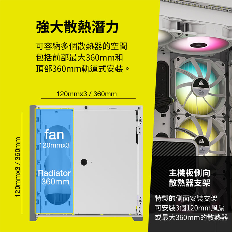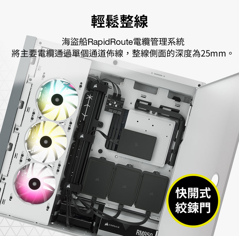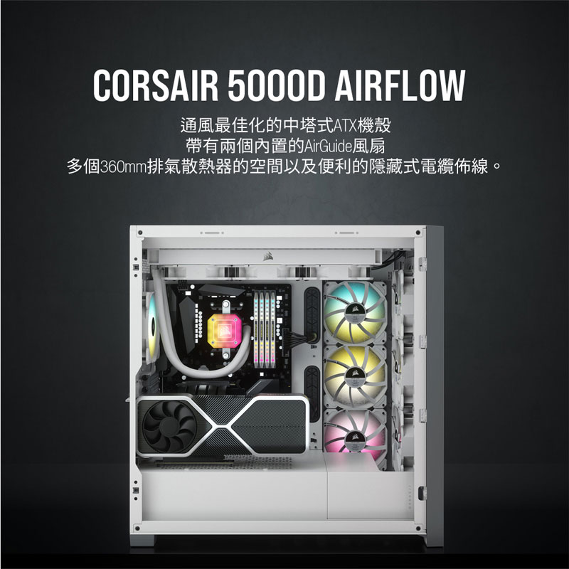 海盜船 5000D Airflow 白 顯卡長42/CPU高17/玻璃透側/PWM集線器/E-ATX(9011211)