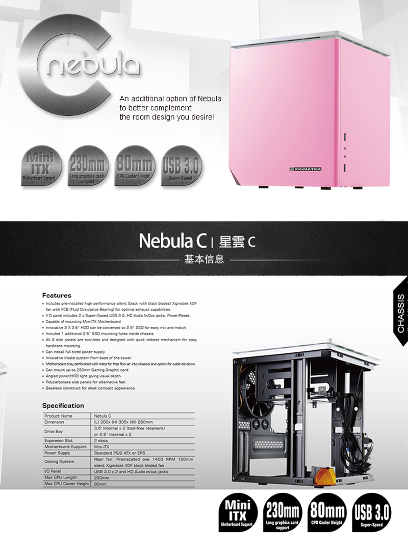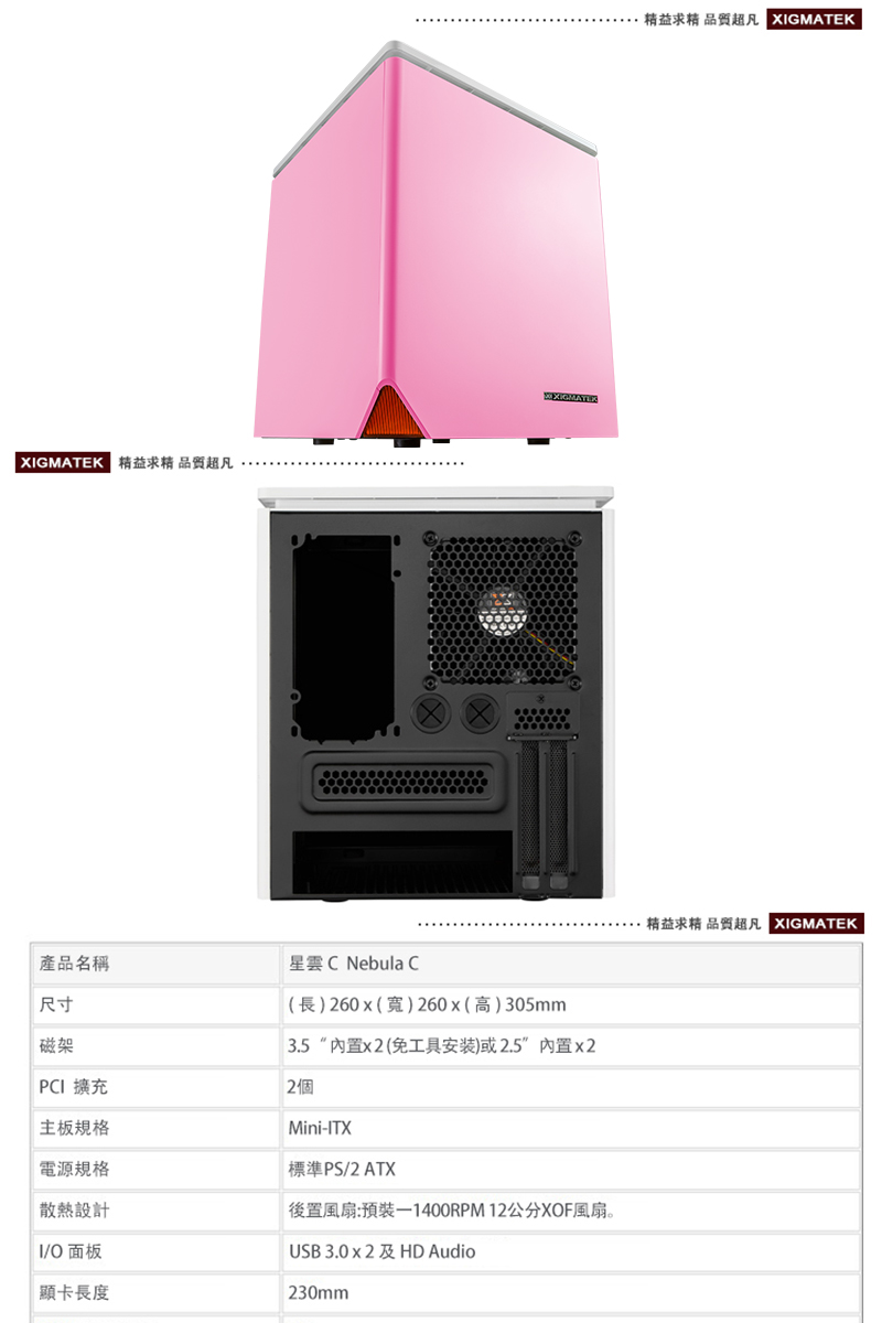 • Xigmatek Nebula C USB 3.0 二小 電腦機殼 粉紅色