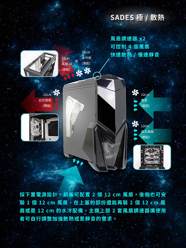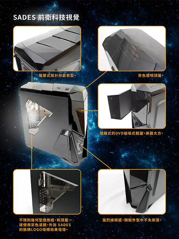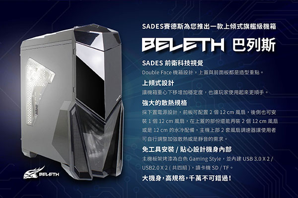 • SADES賽德斯 巴列斯Beleth (2大4小)旗艦電腦機殼 (黑色)