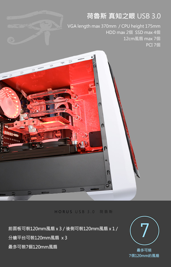 SADES賽德斯 Horus 荷魯斯(6小) 強化裝甲系列 水冷電腦機箱(紅色)