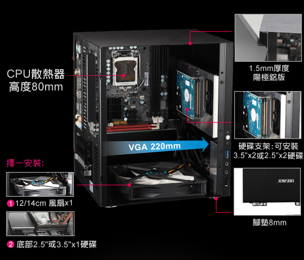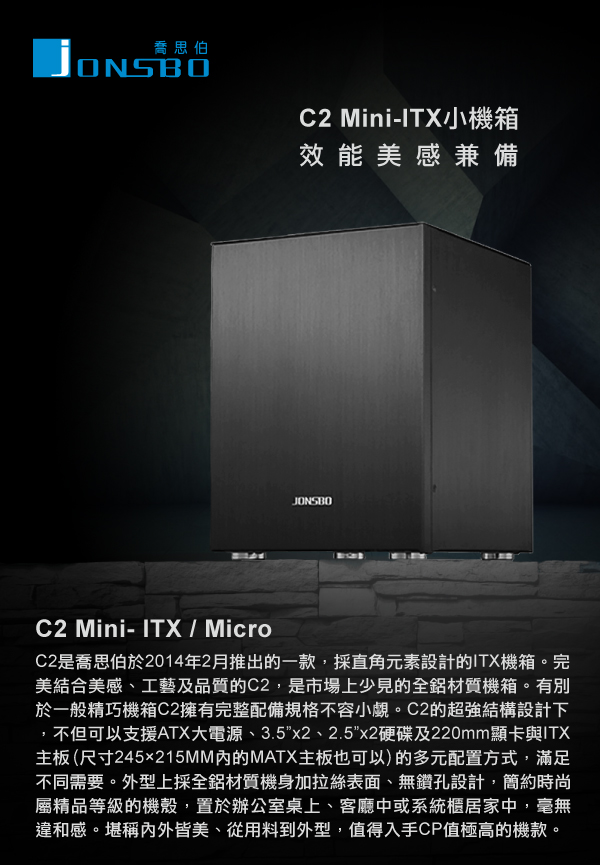 • 喬思伯 C2(黑) 顯卡長22/CPU高/SSD*2/M-ATX