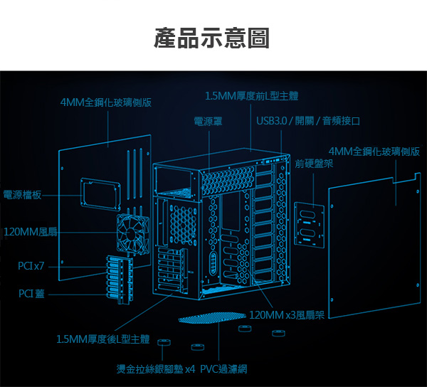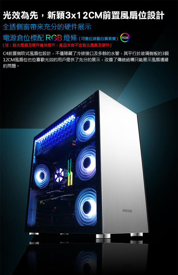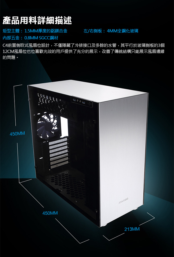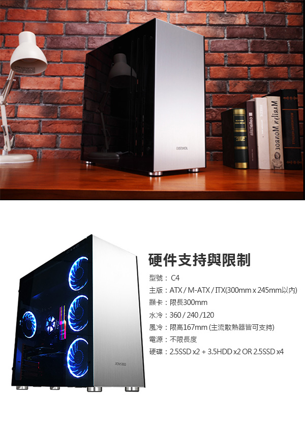 • 喬思伯 C4 銀 顯卡長30/CPU16.7/雙側玻璃/ATX