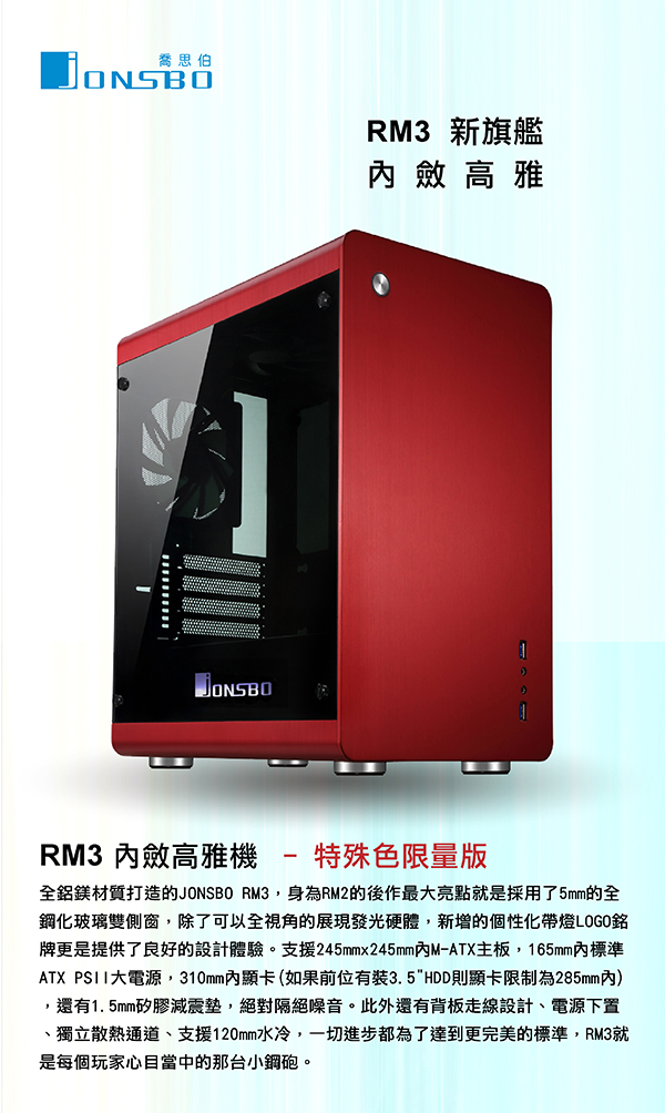 • 喬思伯 RM3 新旗艦M-ATX(5小) 全鋁機殼 (紅色限量版) 售完為止