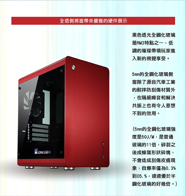喬思伯 RM3 新旗艦M-ATX(5小) 全鋁機殼 (紅色限量版) 全鋼化玻璃