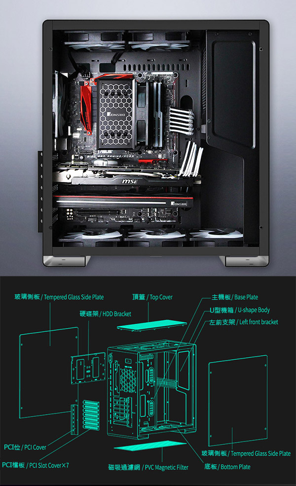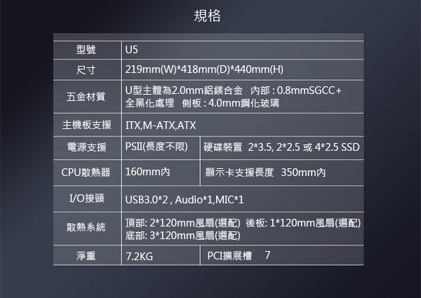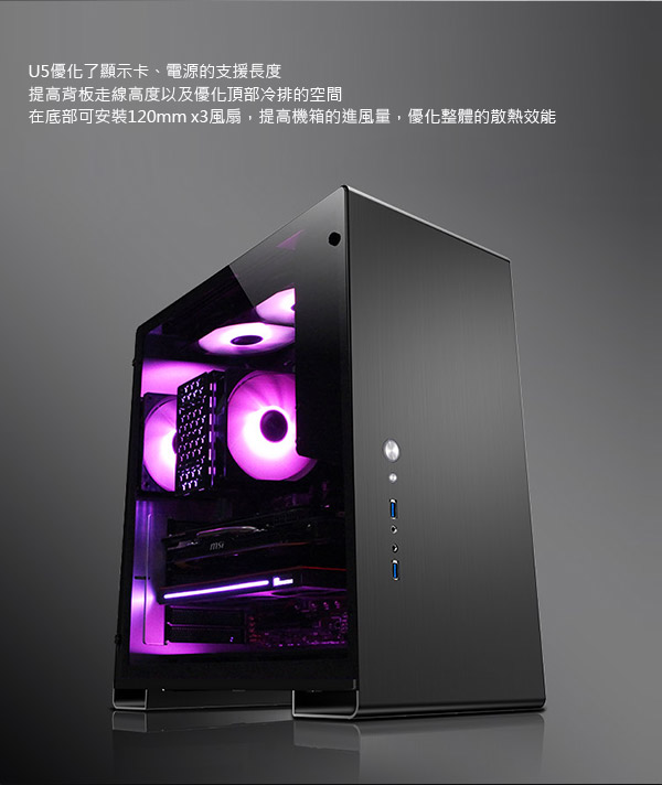 • 喬思伯 U5 黑 顯卡長35/CPU高16/玻璃測透/ATX