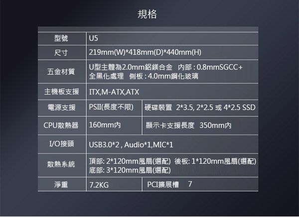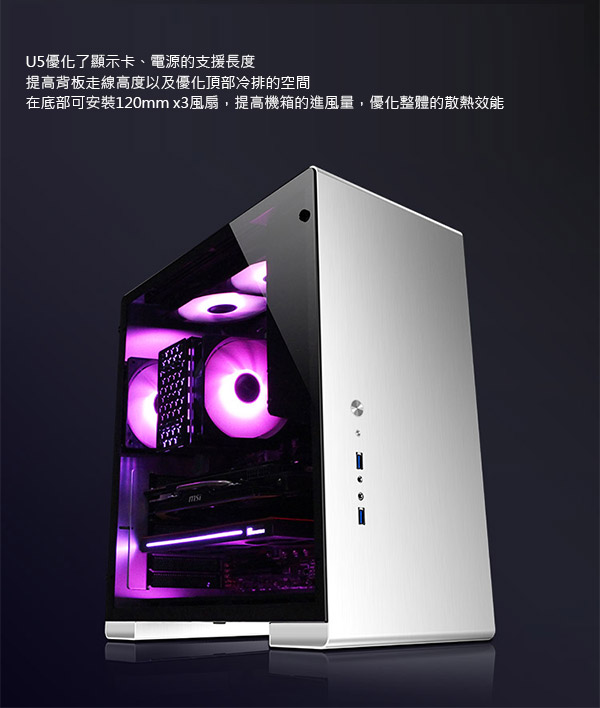 • 喬思伯 U5 銀 顯卡長35/CPU高16/玻璃測透/ATX