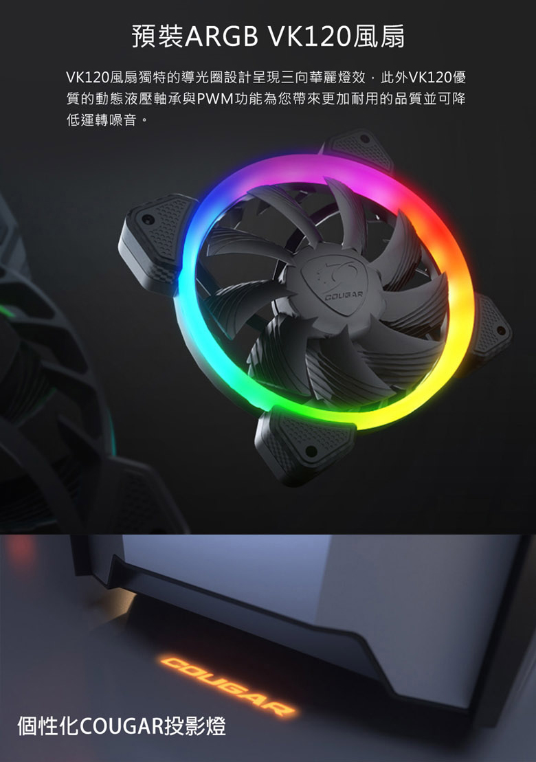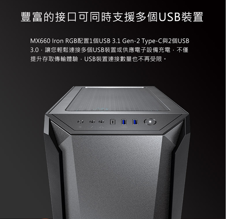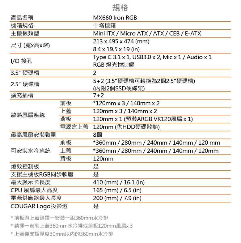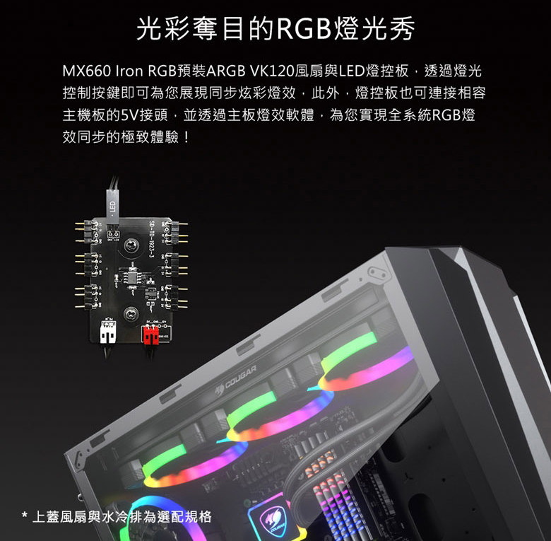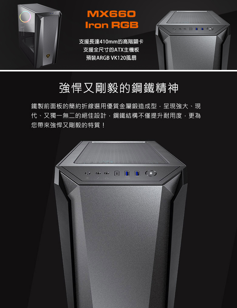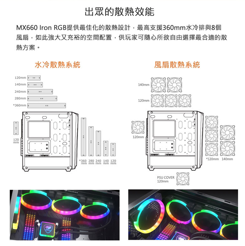 COUGAR MX660 Iron RGB 黑 顯卡長41/CPU高16.5/玻璃透側/Logo投