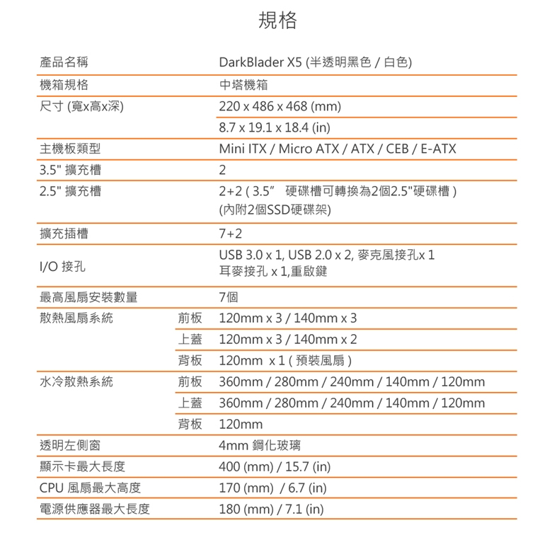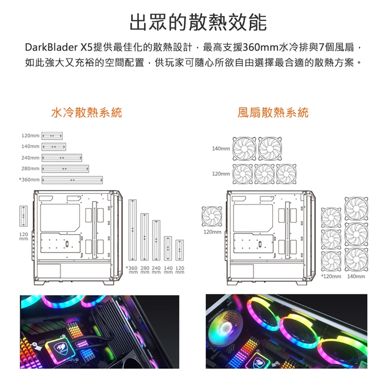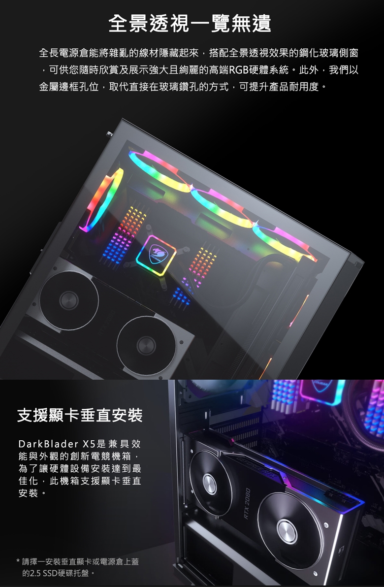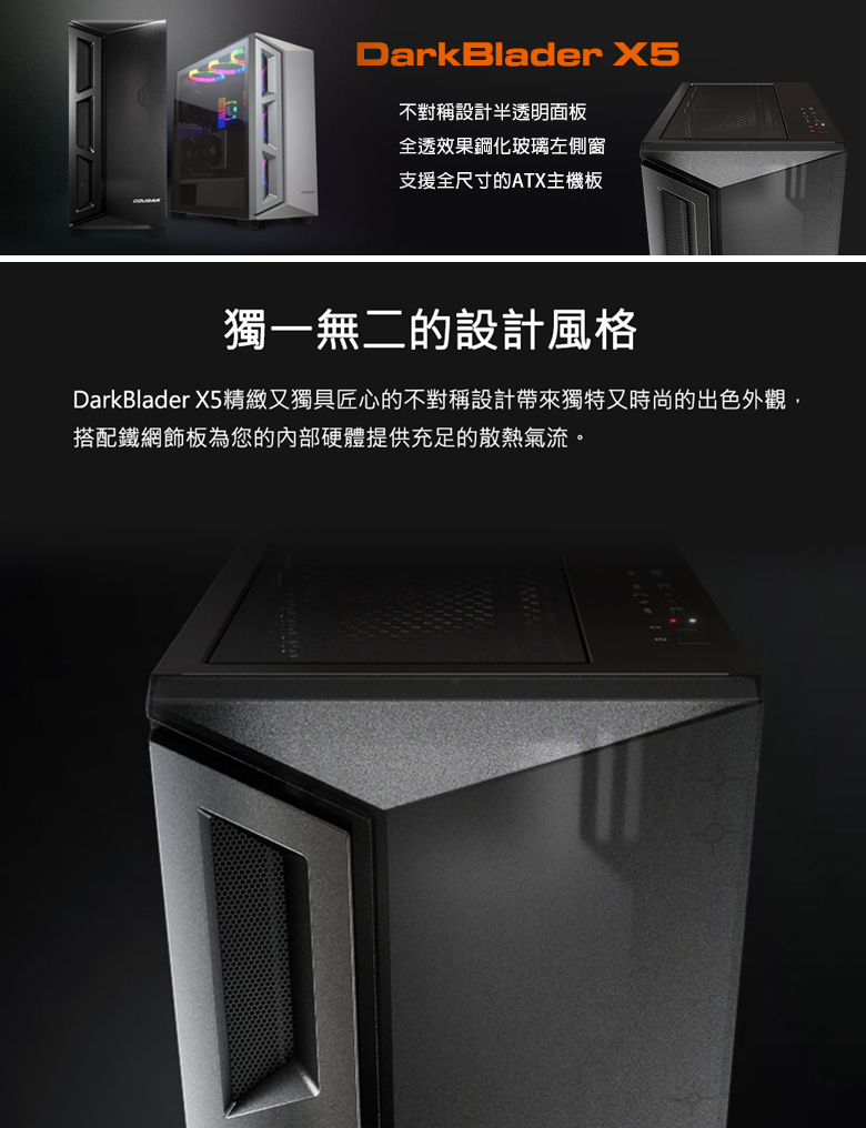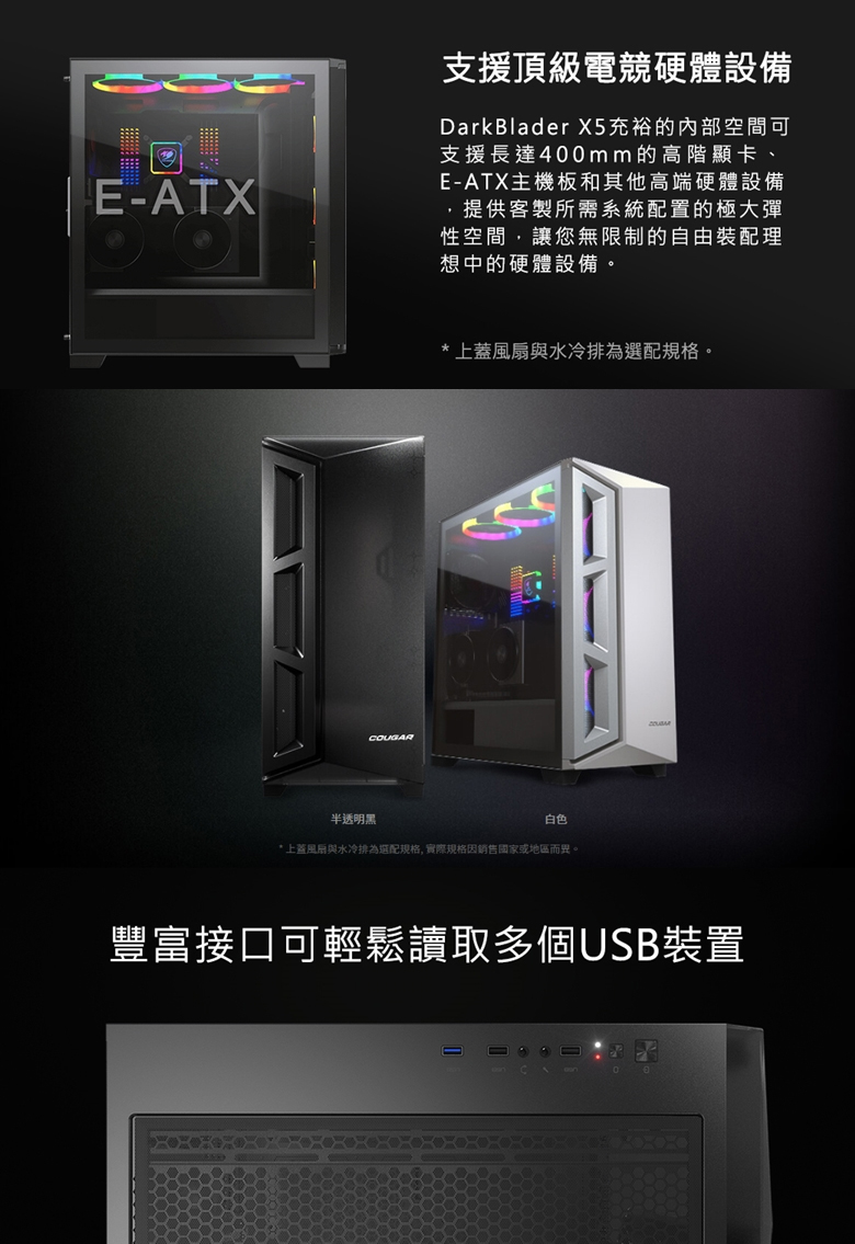 COUGAR DarkBlader X5 白 顯卡長40/CPU高17/網孔面板/玻璃透側/E-ATX