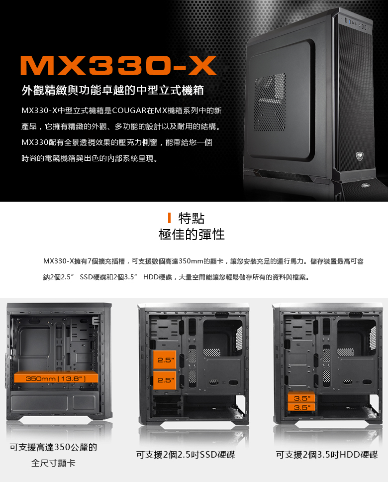 COUGAR MX330-X 非透側/顯卡長35/CPU高15.5/網孔面板/ATX