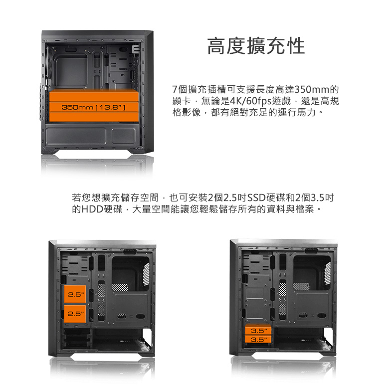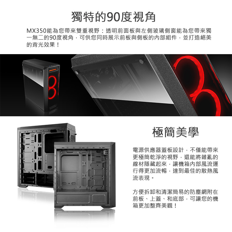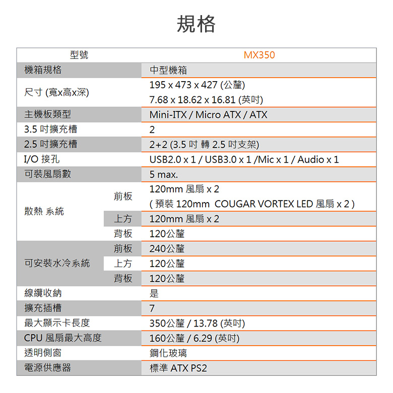 • COUGAR MX350 顯卡長35/CPU高16/玻璃透側/獨特面板切割