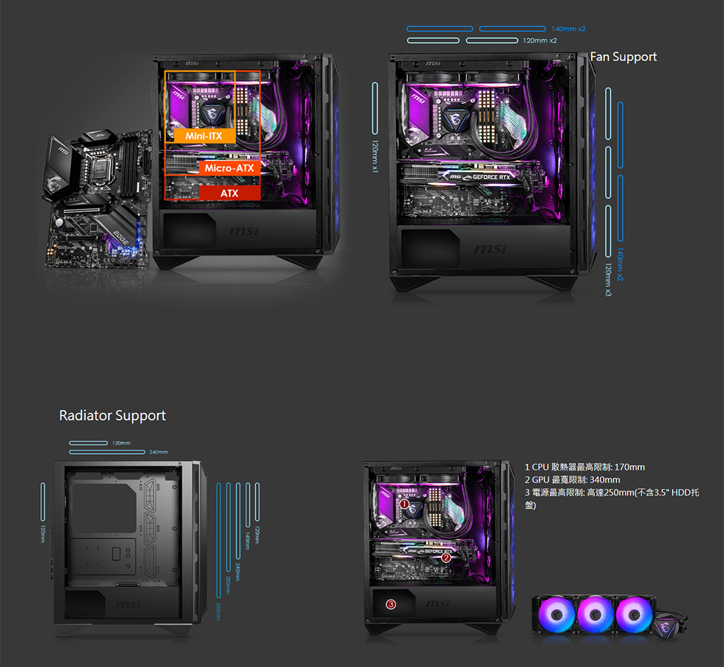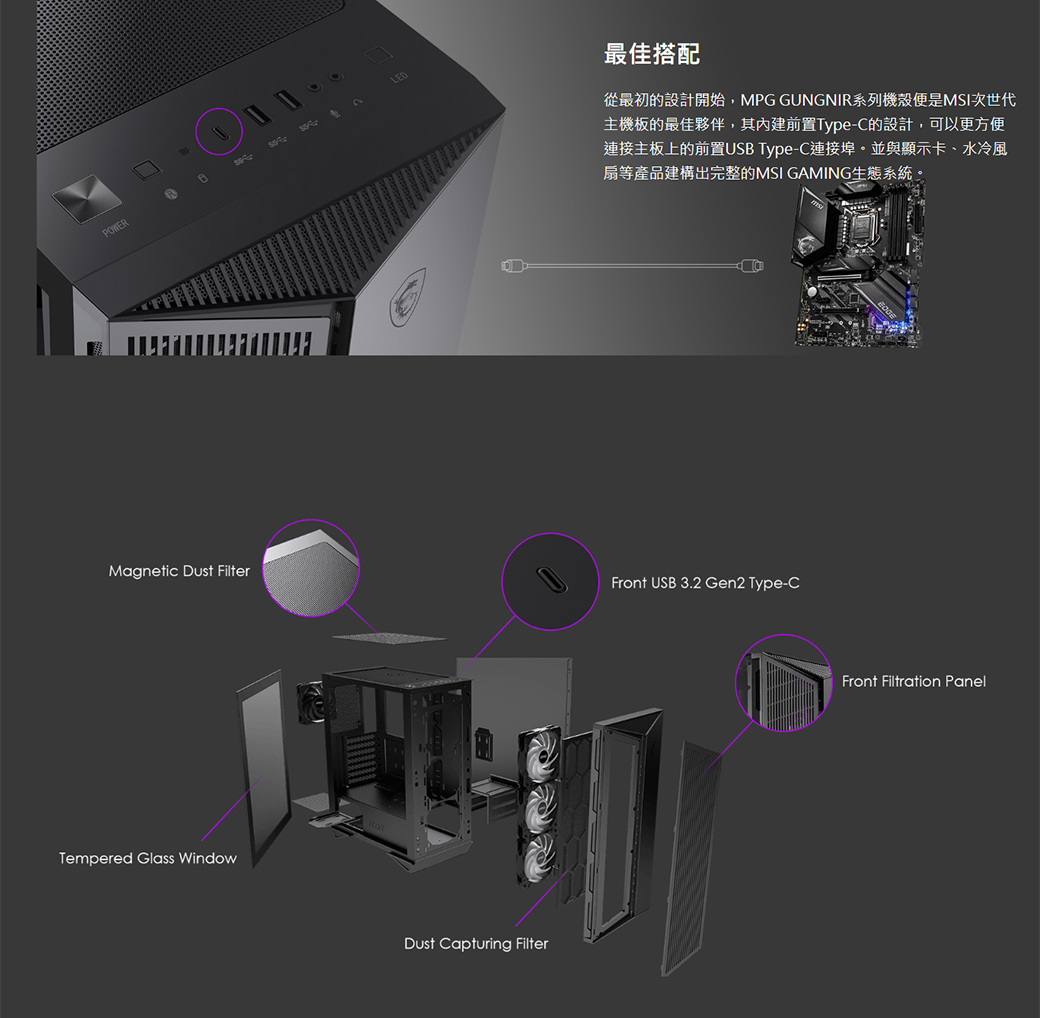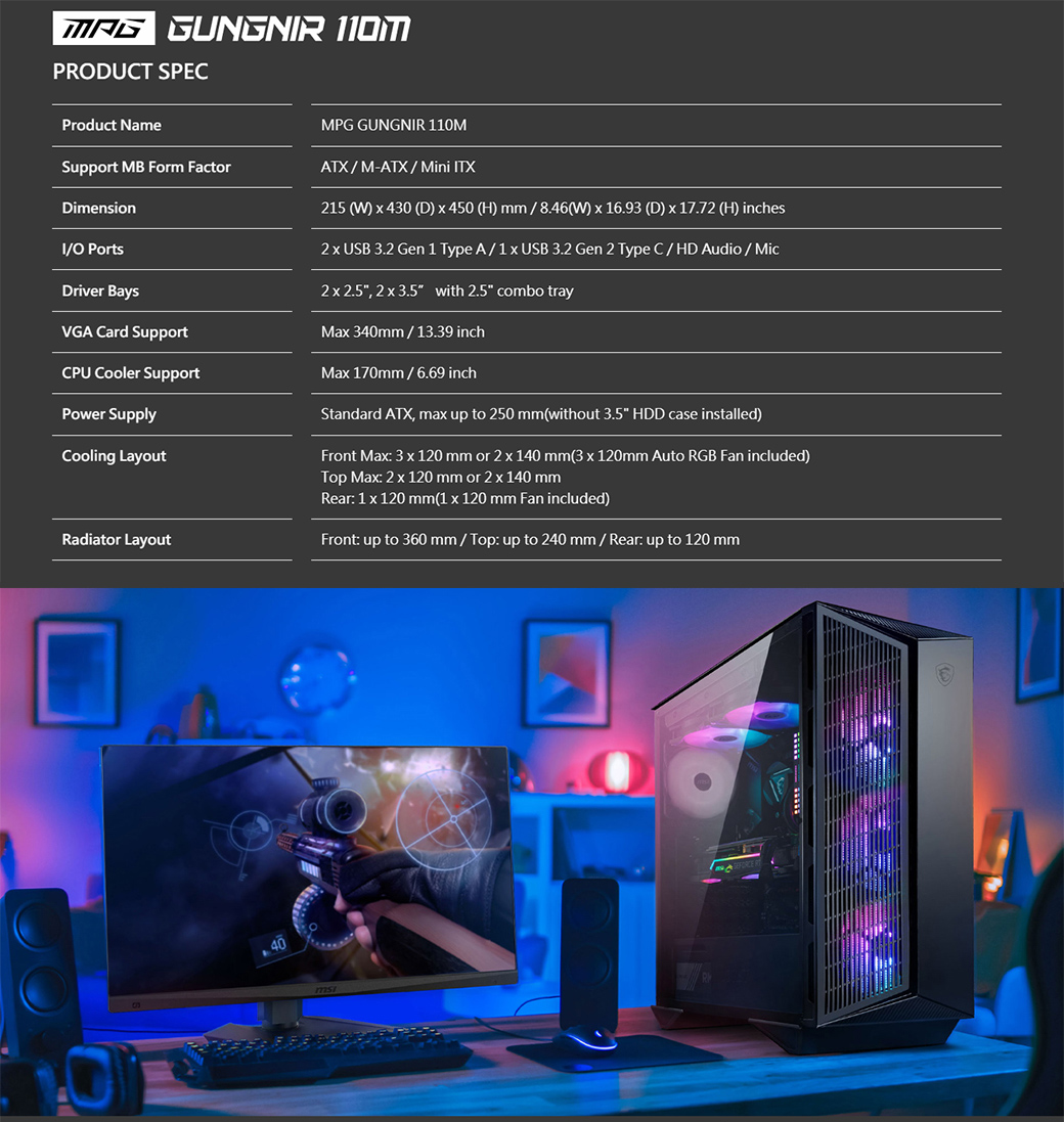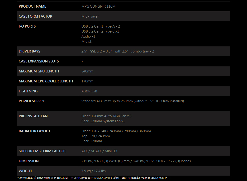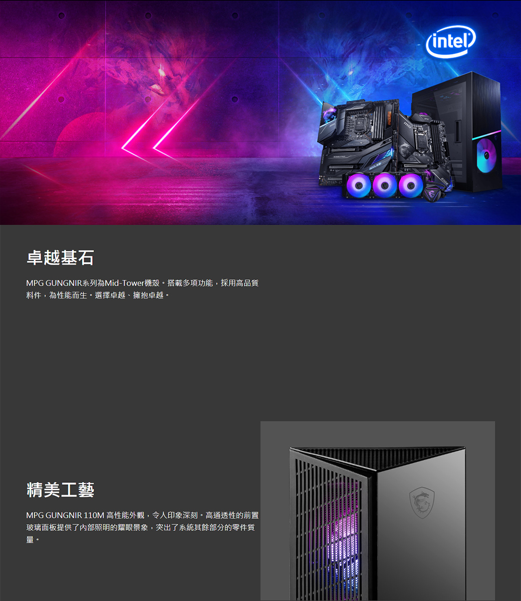 MSI MPG GUNGNIR 110M 顯卡長34/CPU高17/玻璃透側/ATX