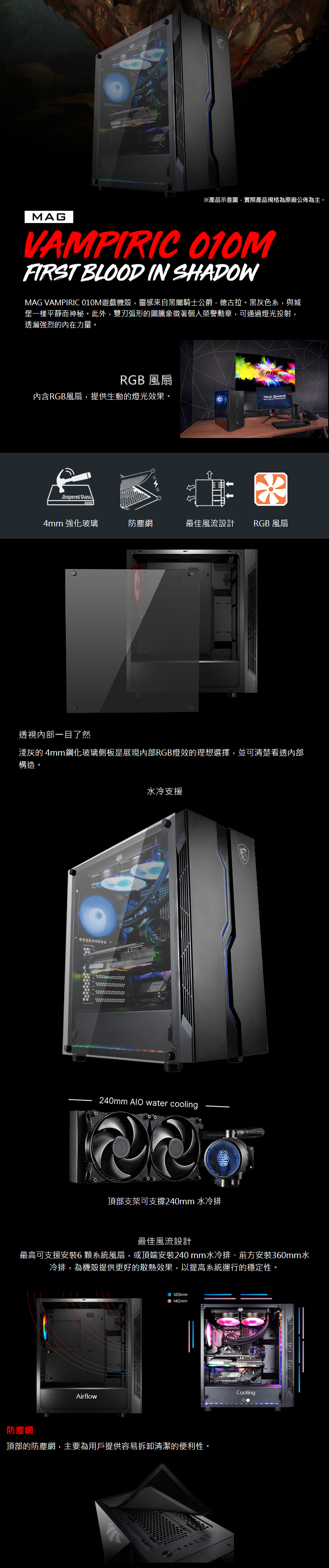 MSI MAG VAMPIRIC 010M 吸血鬼M 顯卡長36/CPU高16.7/玻璃透側/RGB/ATX
