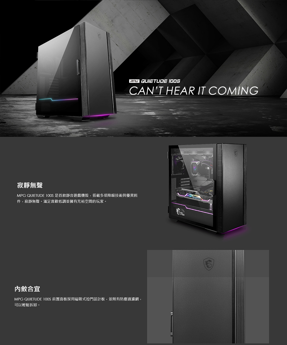 • 微星 MPG QUIETUDE 100S 靜音機殼