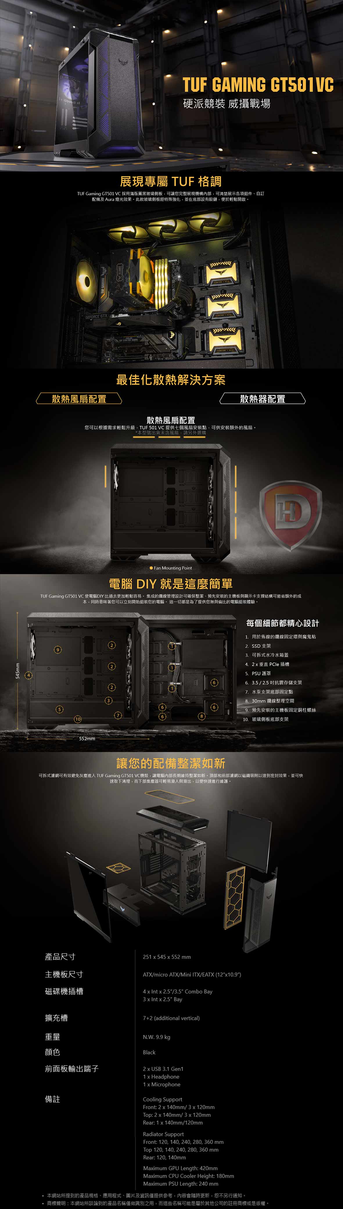 ASUS TUF Gaming GT501VC 顯卡長42/CPU高18/全景玻璃透側/ATX(未含風扇)