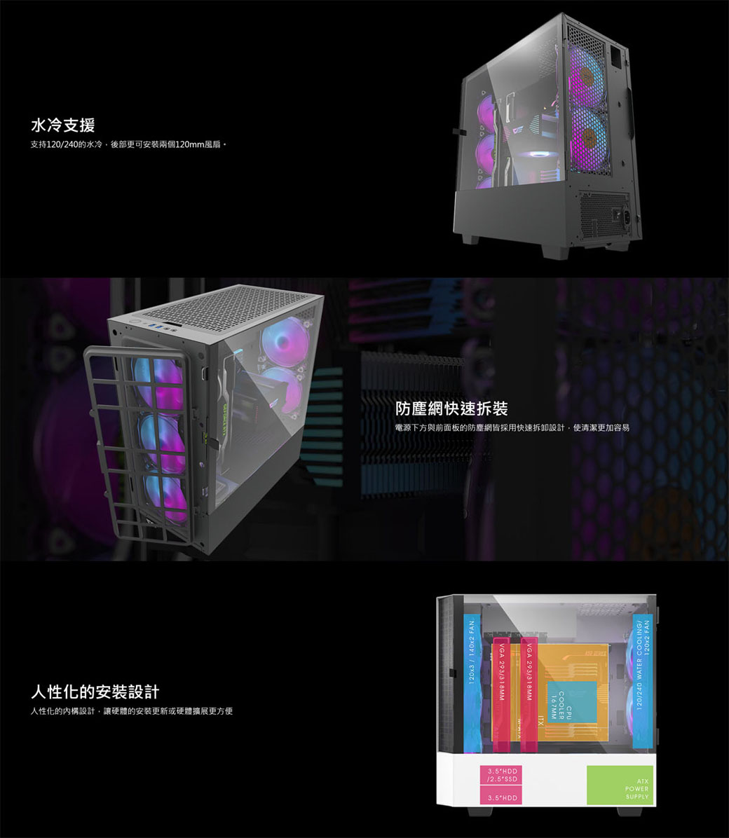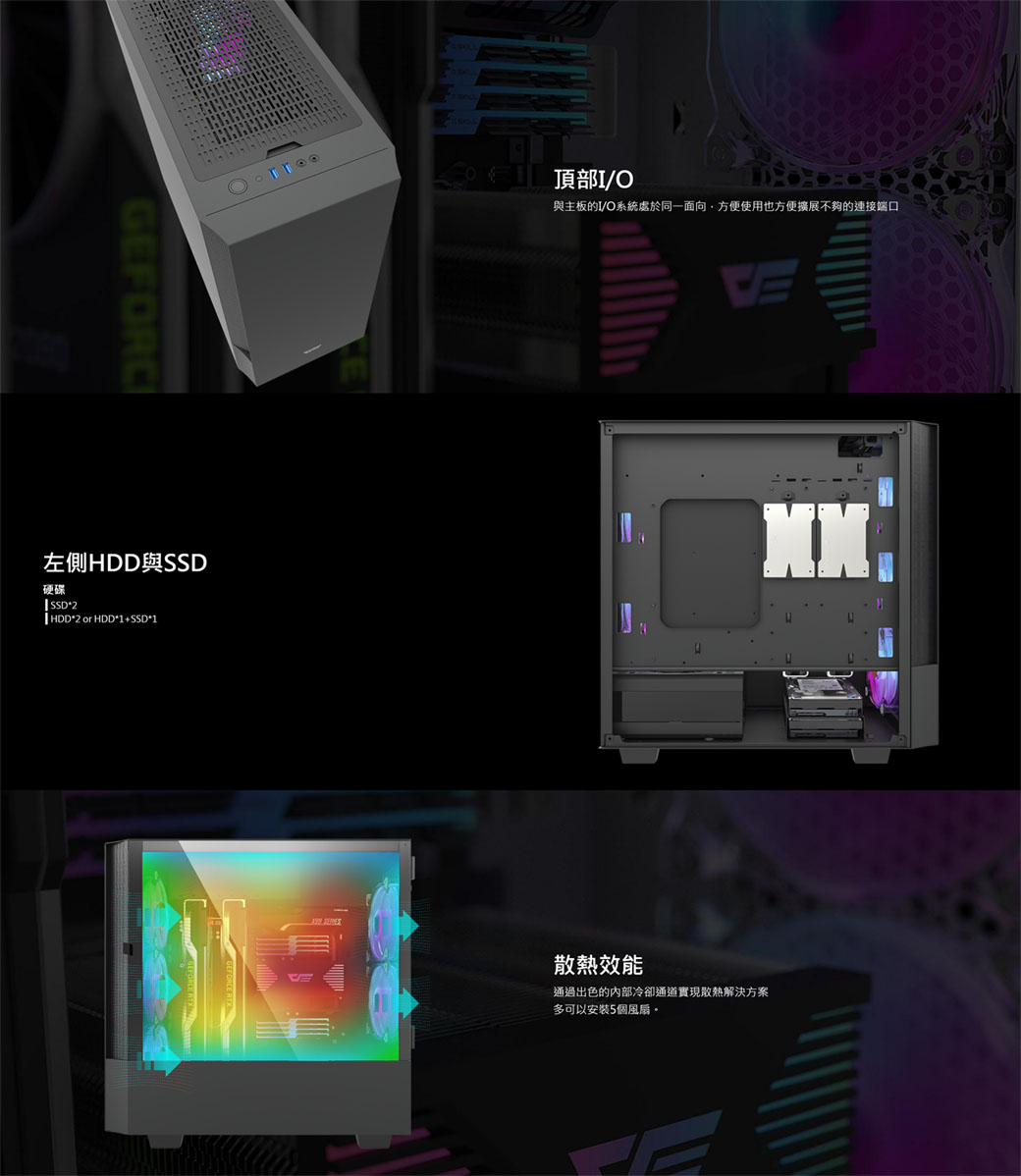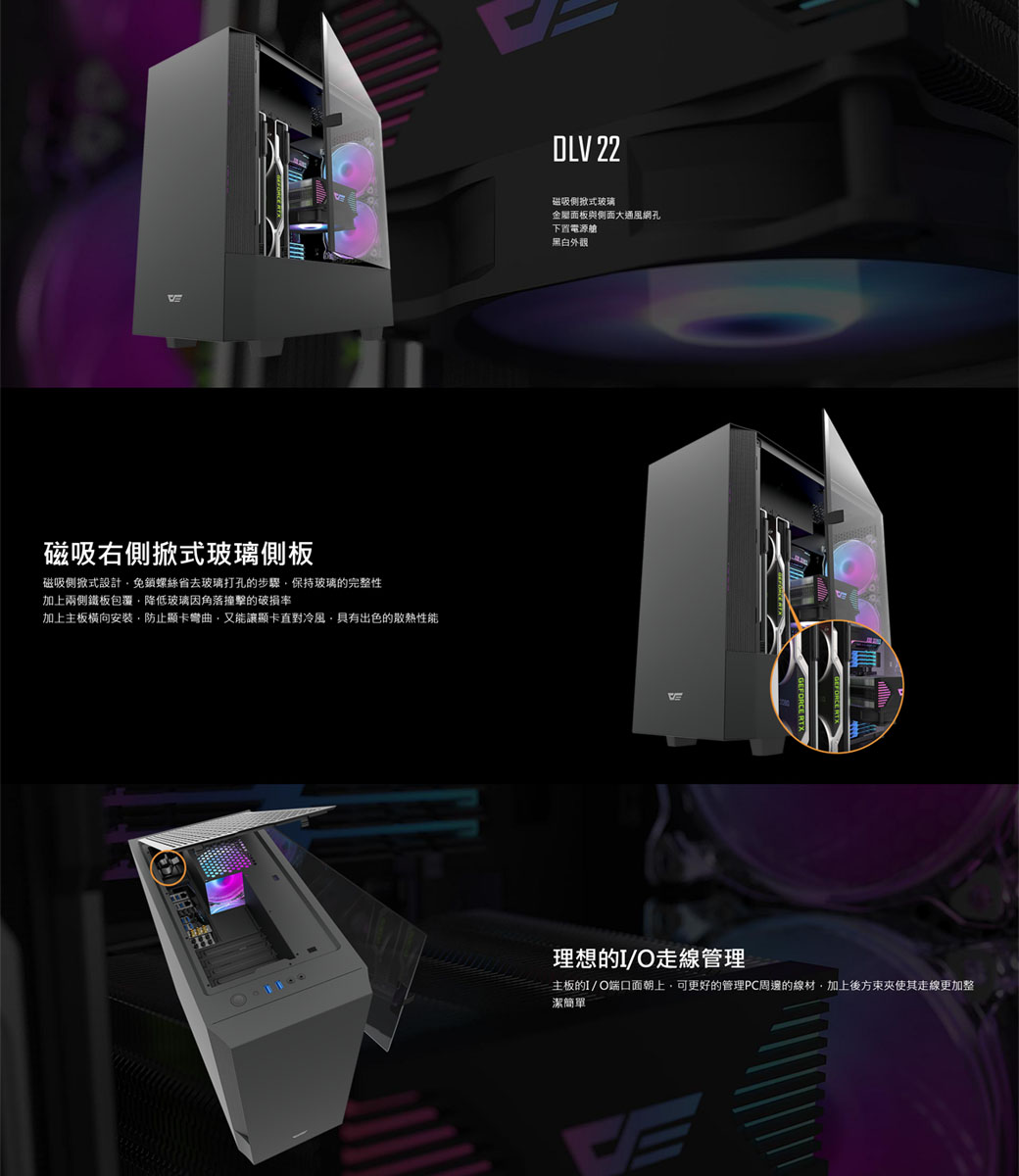 aigo darkFlash DLV 22 黑 顯卡長29/U高16.7/右掀玻璃側板/顯卡垂直安裝/ATX