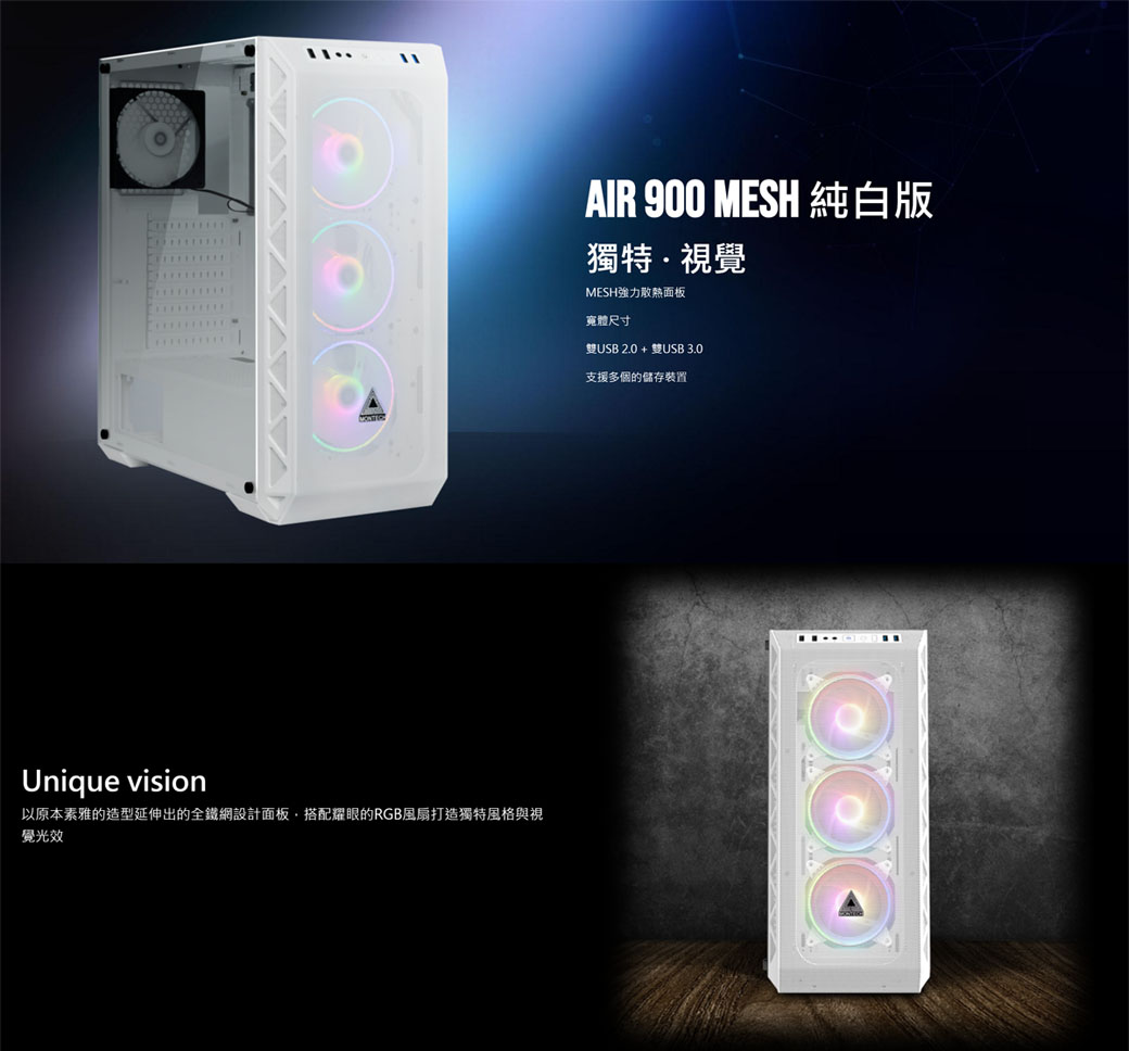 Montech Air 900 Mesh 白 顯卡長37/CPU高16.5/玻璃透側/E-ATX
