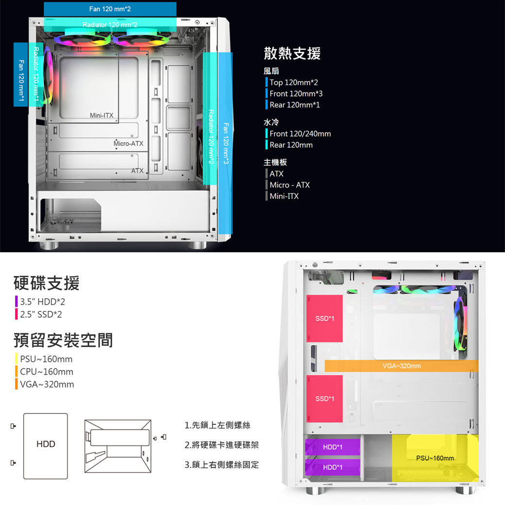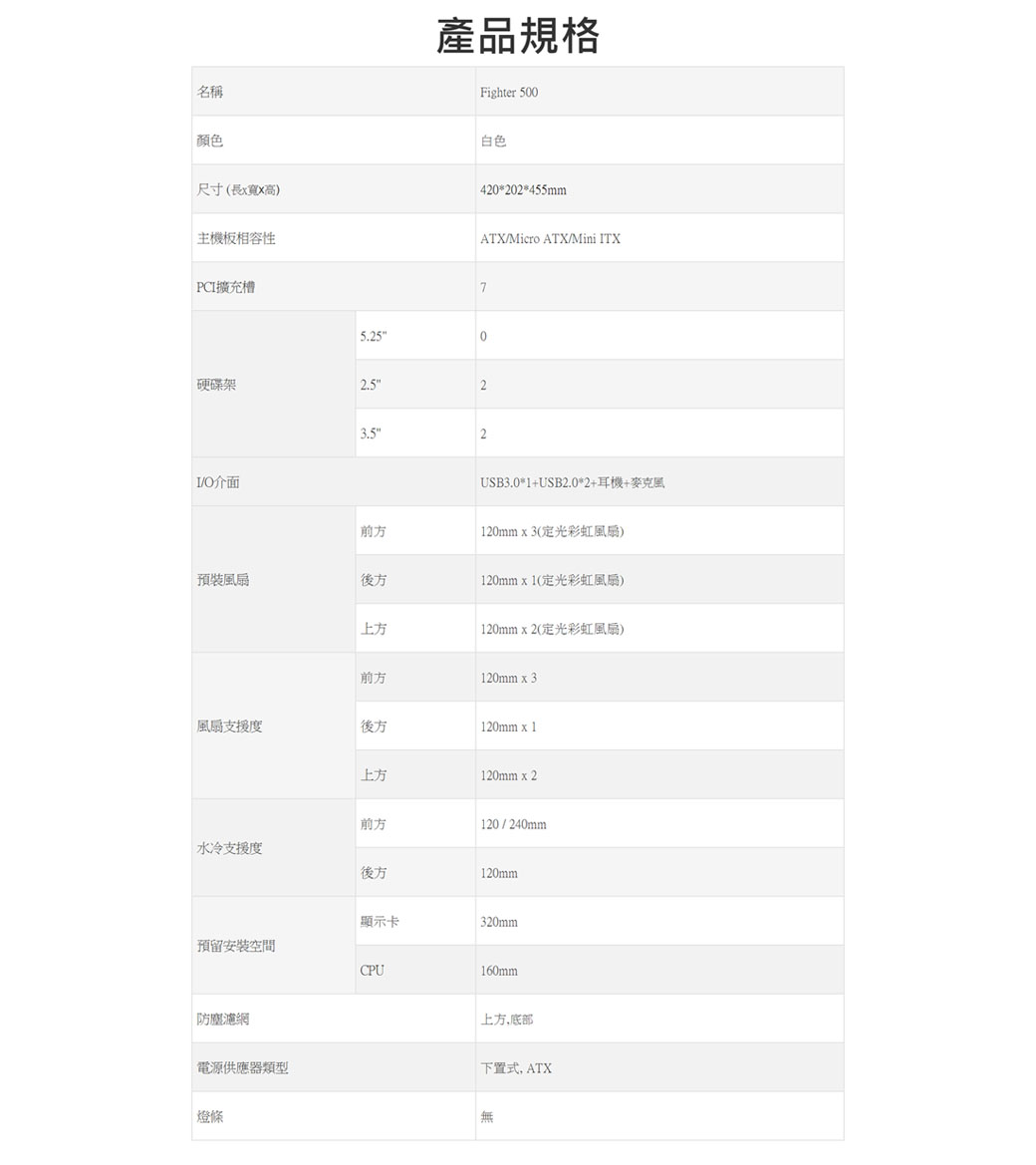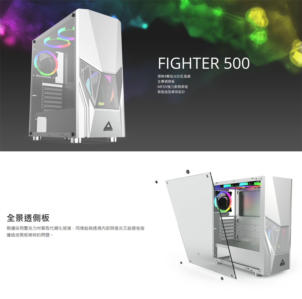 Montech 拳擊手 Fighter 500 白 顯卡長32/CPU高16/壓克力透側/ATX