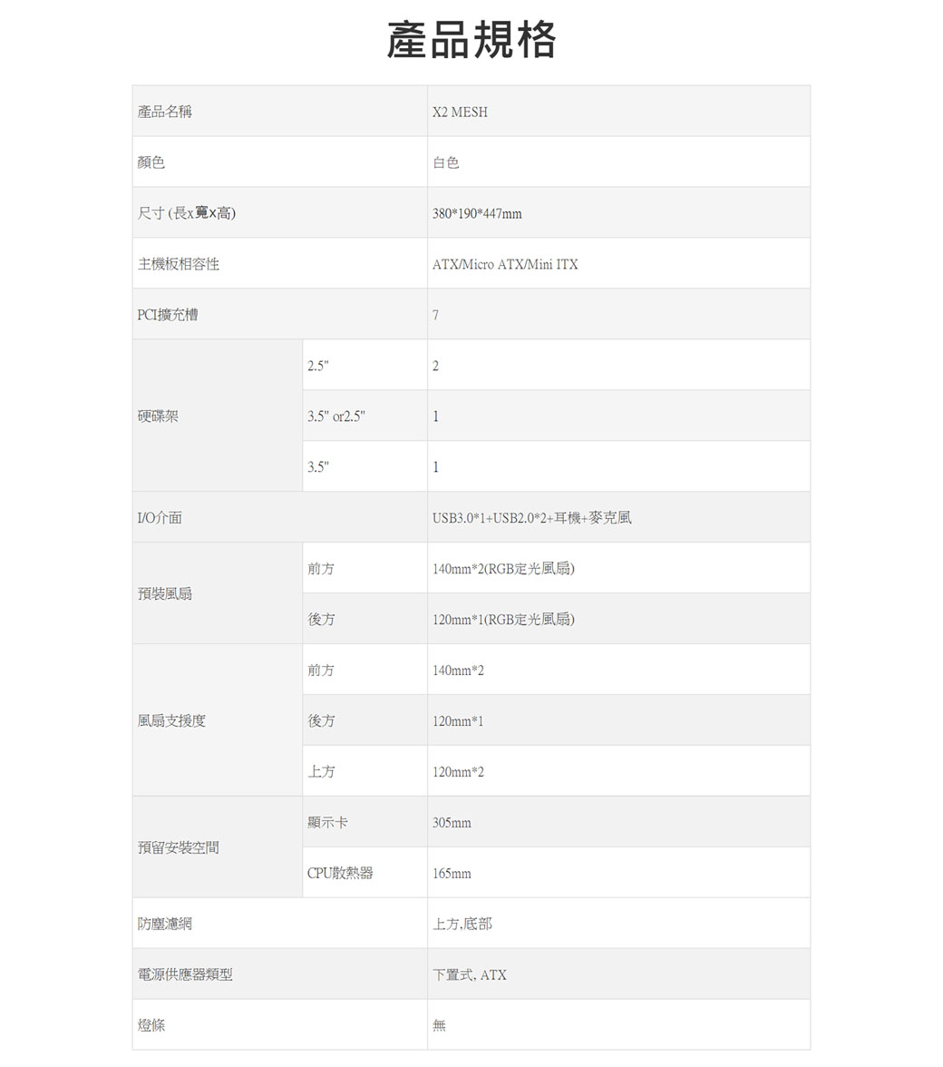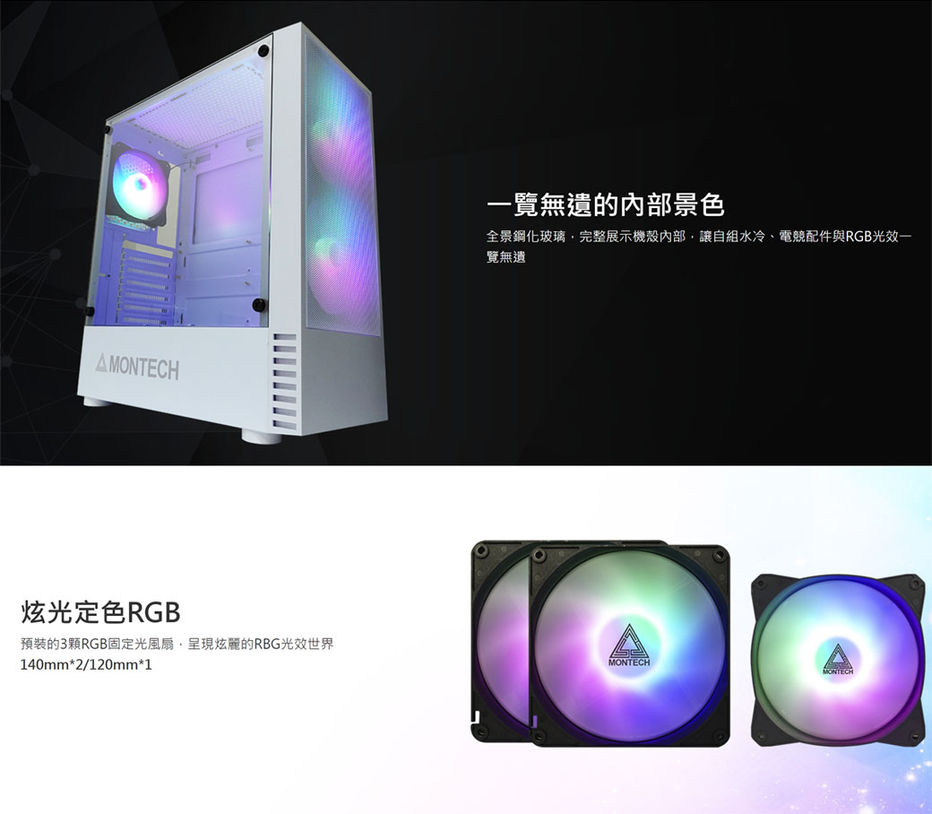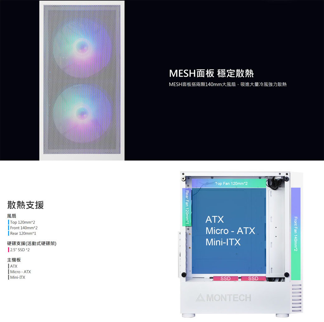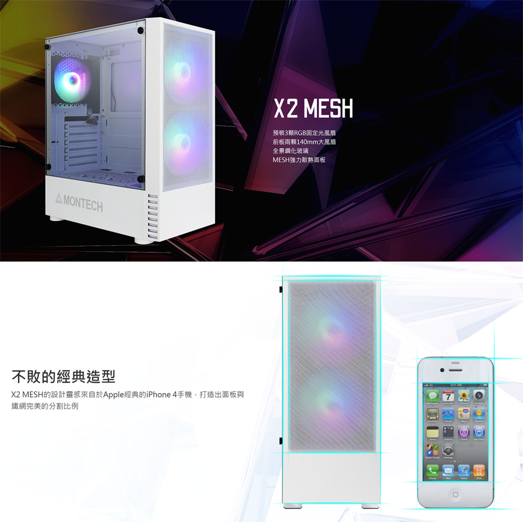 MONTECH(君主) X2 MESH(白)顯卡長30.5/CPU高16.5/網孔面板/玻璃透側/ATX