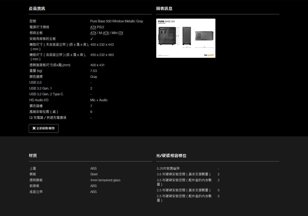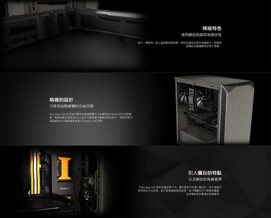 be quiet! PURE BASE 500 灰 透側版 顯卡長36.9/CPU高19/玻璃透側/ATX(BGW36)