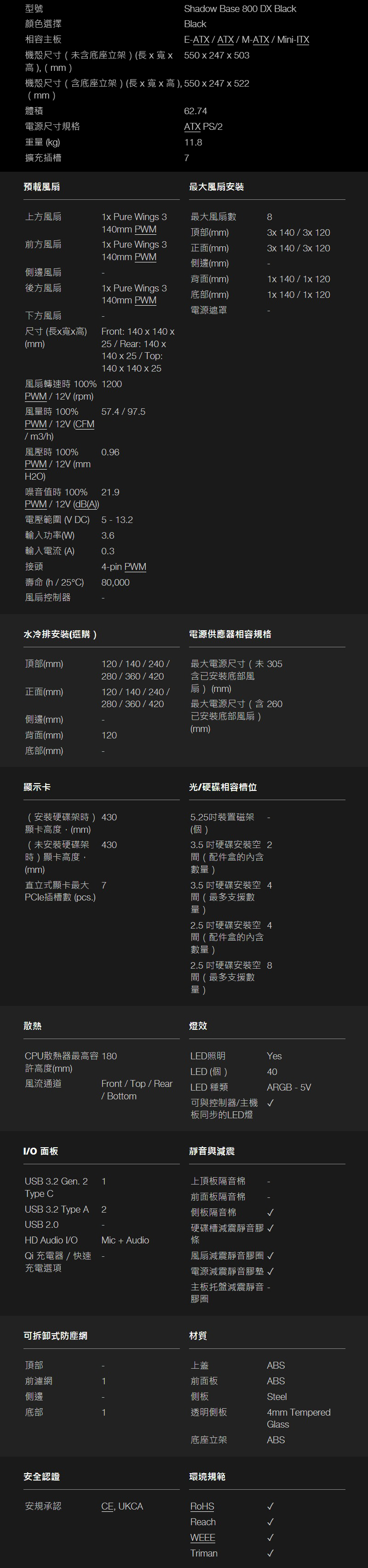 • be quiet! SHADOW BASE 800DX 黑 顯卡長43/CPU高18/玻璃透側/E-ATX(BGW61)